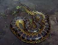 À peine remis de mes émotions, on me raconta qu’alors que j’étais en l’air, l’anaconda revint à la charge dans mon dos, sorti de l’eau et essaya une deuxième fois de me happer. Le bossman fit feu sur le monstre au risque de me toucher, mais il, n’avait pas le choix. À l’impact du plomb de chasse ou devant l’approche de la pirogue qui allait le heurter, l’animal abandonna sa charge et au lieu de me cueillir au vol, plongea sous la pirogue qu’il frôla et s’enfonça dans les eaux de la rivière. Il est sûr que cette histoire a marqué ceux qui en ont été les témoins, le caporal et les deux piroguiers. Ils en ont été plus marqués que moi. Pour moi ce fût rapide, bref, assez exaltant même si cela m’a foutu avec le recul une trouille bleue qui c’est bien vite changée en extraordinaire histoire à raconter. Je n’ai pas vraiment eu le temps d’avoir peur et je suis assez content de l’avoir vécu même si depuis j’évite soigneusement de passer à proximité des gros anacondas… Moi qui ai toujours eu la phobie des serpents…