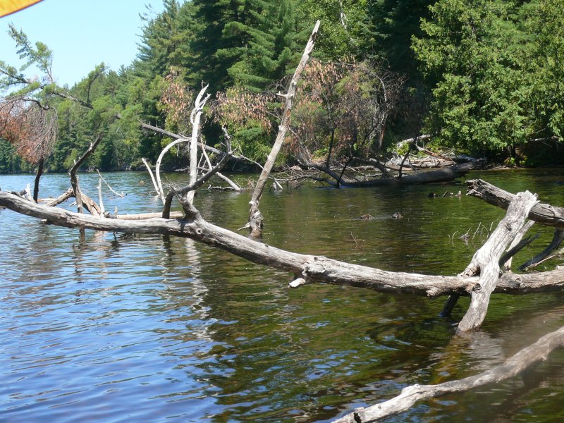 à l’entrée d’une baie, nous slalomons entre des arbres morts.