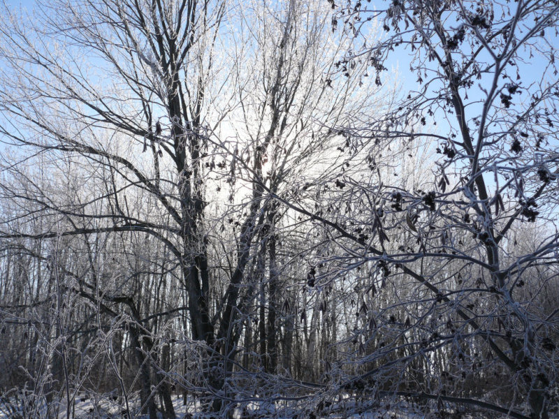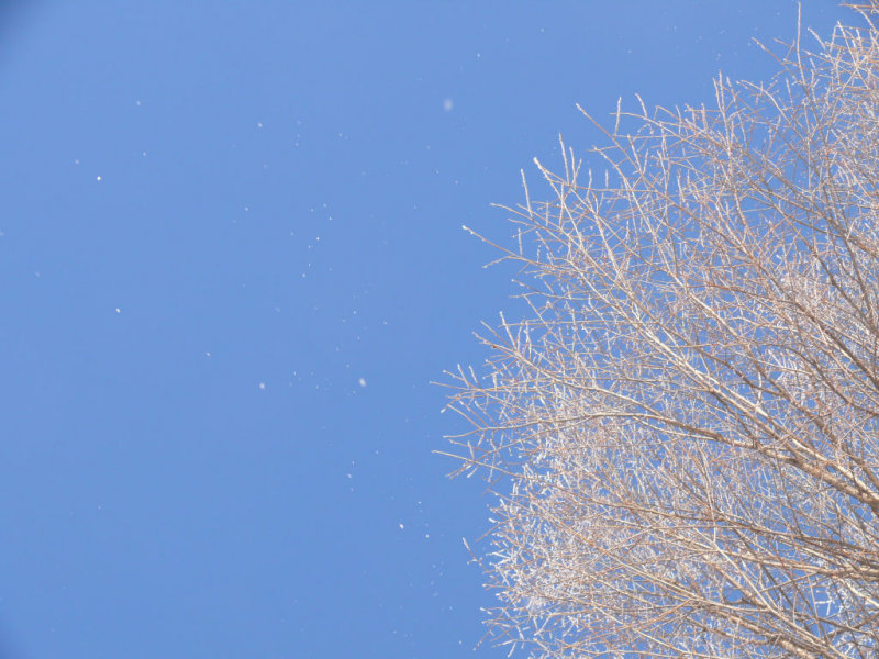 Soudain, des myriades de diamants virevoltent autour de nous. Ce sont des cristaux de glace qui tombent du haut des arbres tels des confettis un jour de fête, c’est splendide.