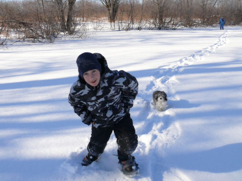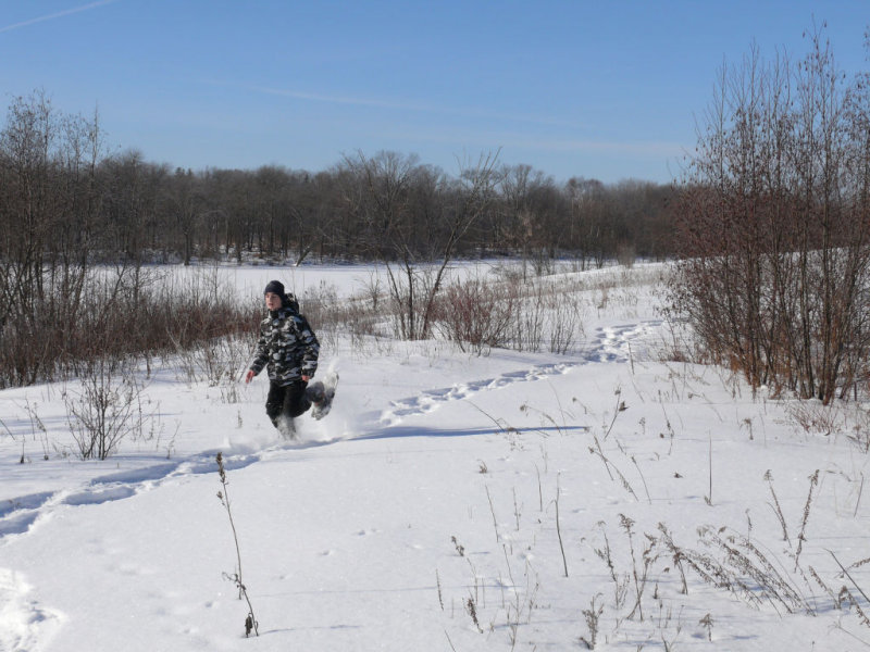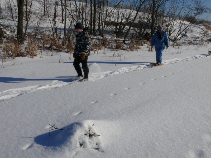 Nous partons nous promener en raquette dans une petite baie où nous pêchons le brochet, les achigans, les dorés en été au milieu d’une riche végétation aquatique.