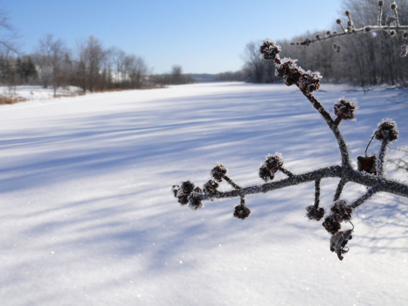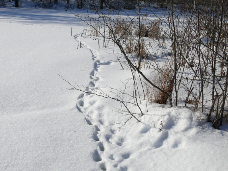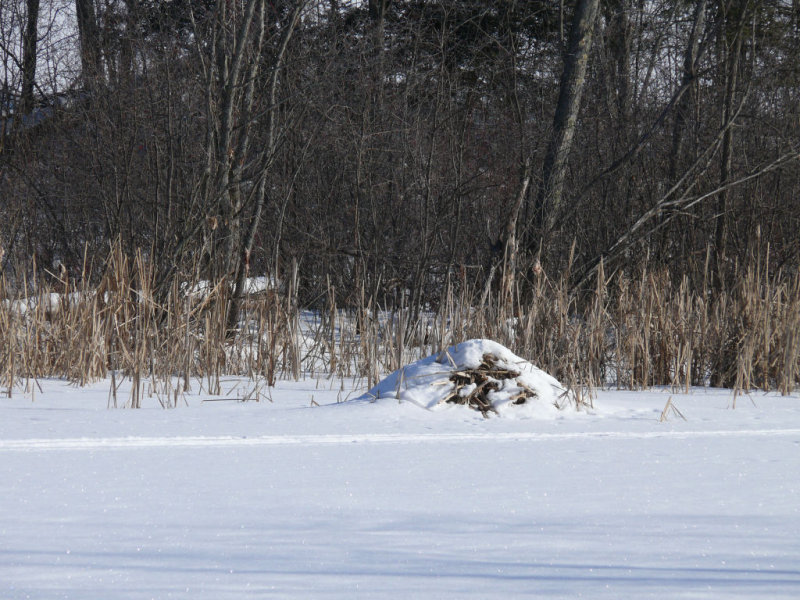 De ce milieu grouillant de vie en été, on ne voit en hiver que quelques typhas, dressés fièrement au milieu des glaces telles des sentinelles végétales qui veillent l’arrivée du printemps. Quelques huttes de rats musqués mettent un peu de relief et sont régulièrement visitées par des petits prédateurs.