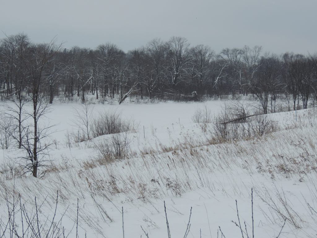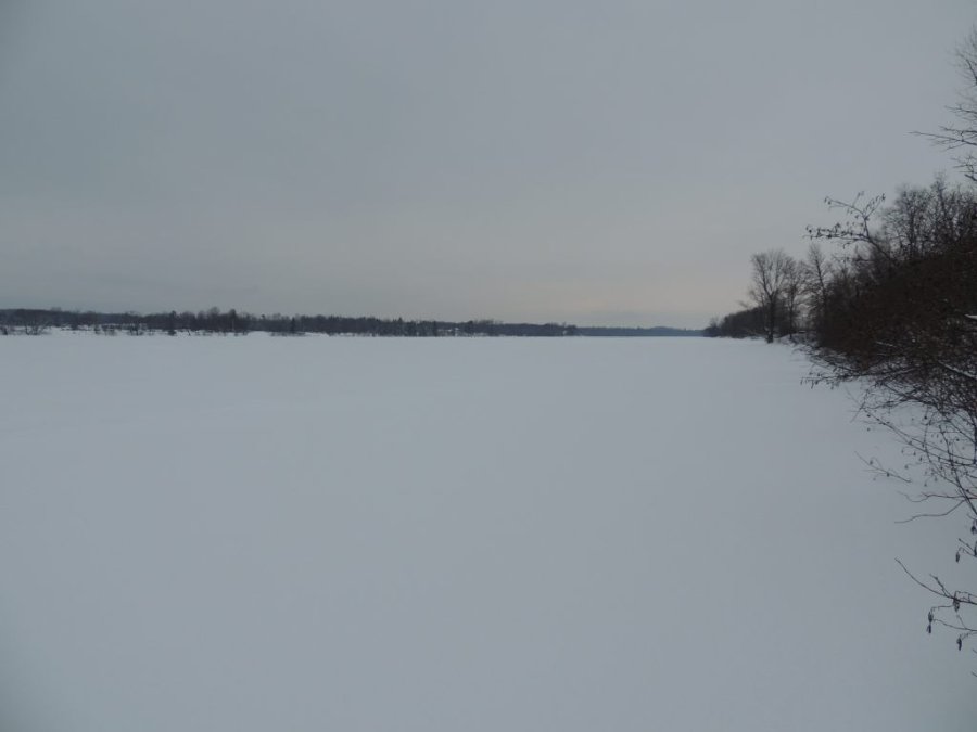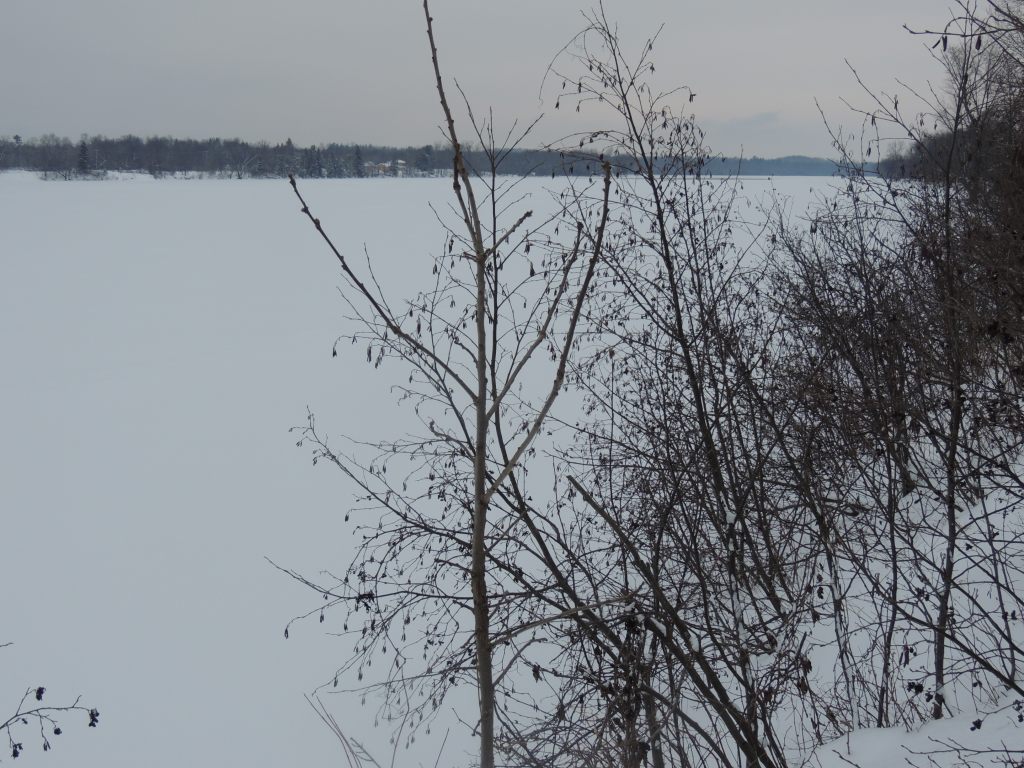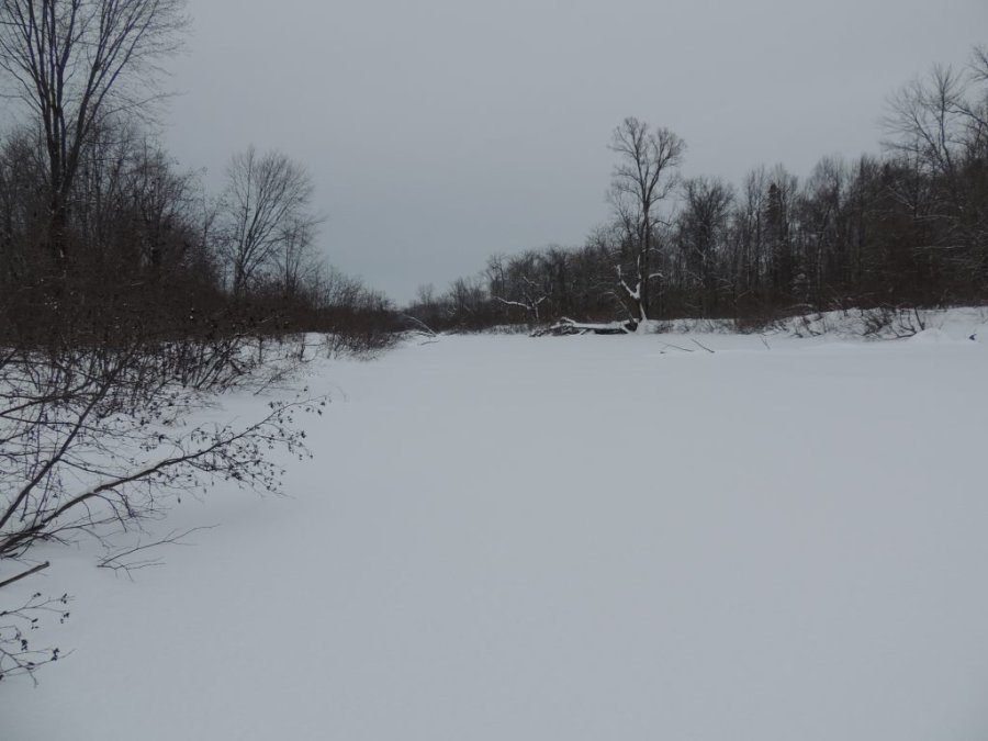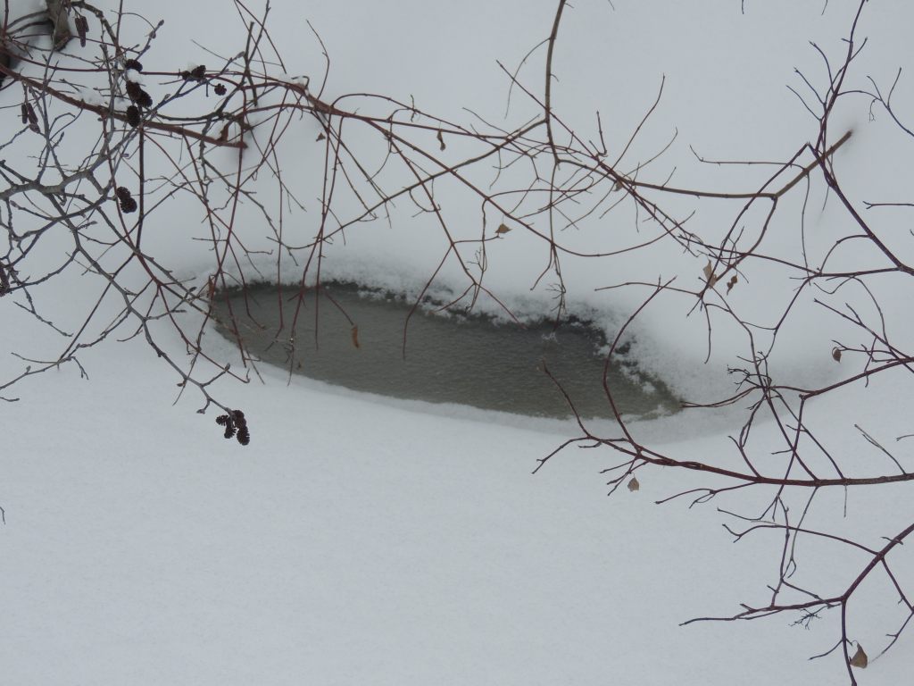 Certaines zones de la rivière dans le lointain ne sont pas gelées et d’autres sont dangereuses à cause des courants qui fragilisent la glace. Je ne les approche jamais.