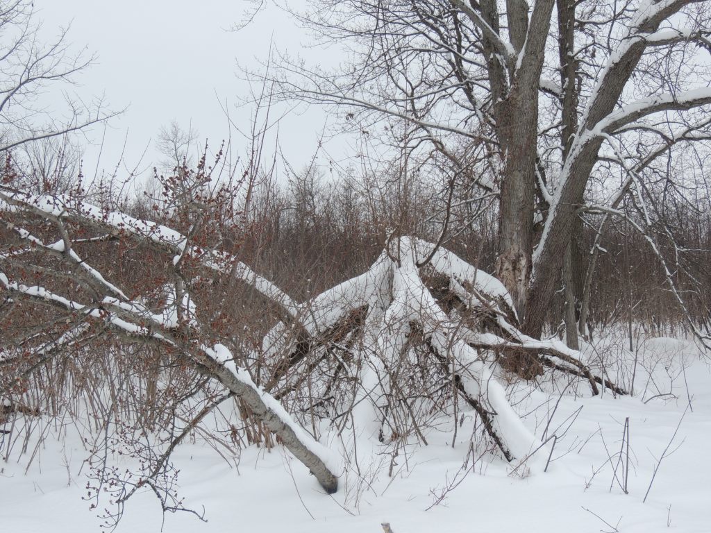 Il y a de nombreux arbres morts abattus par les tempêtes et les orages de ces dernières années ou par les castors.
