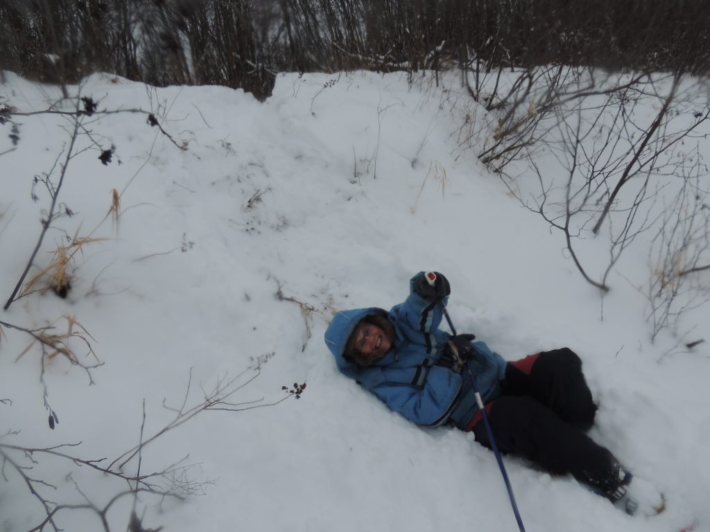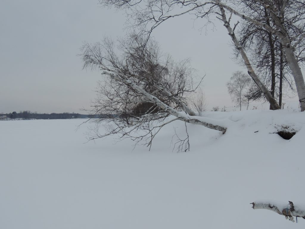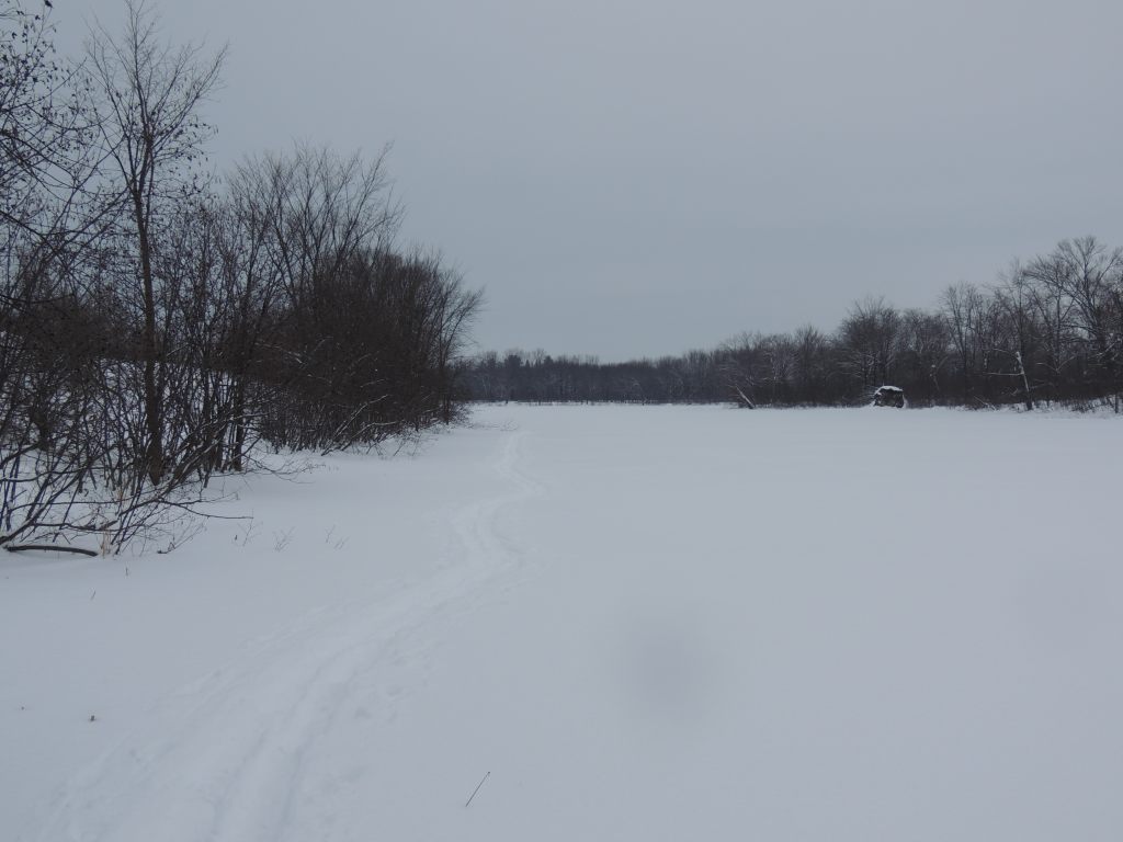 Nous longeons la berge, il y a peu d’eau en été, on ne risque rien et la glace est épaisse.