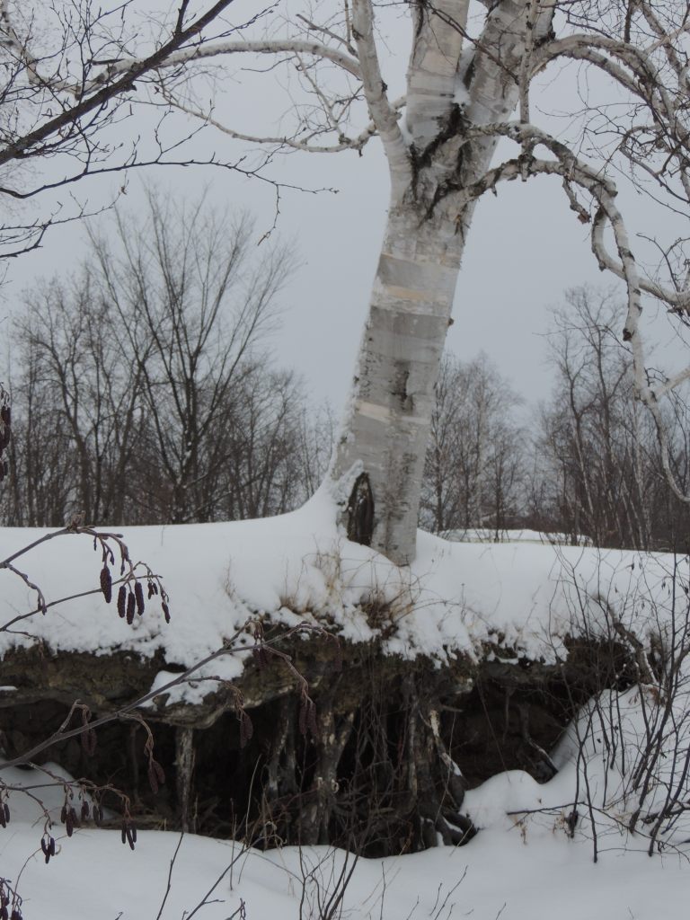 Dans cette zone, il y a beaucoup d’érosion. La berge recule d’au moins un mètre tous les ans. Cet arbre tient par miracle. Ses racines sont en parties à nue.