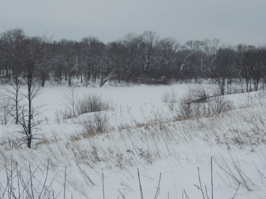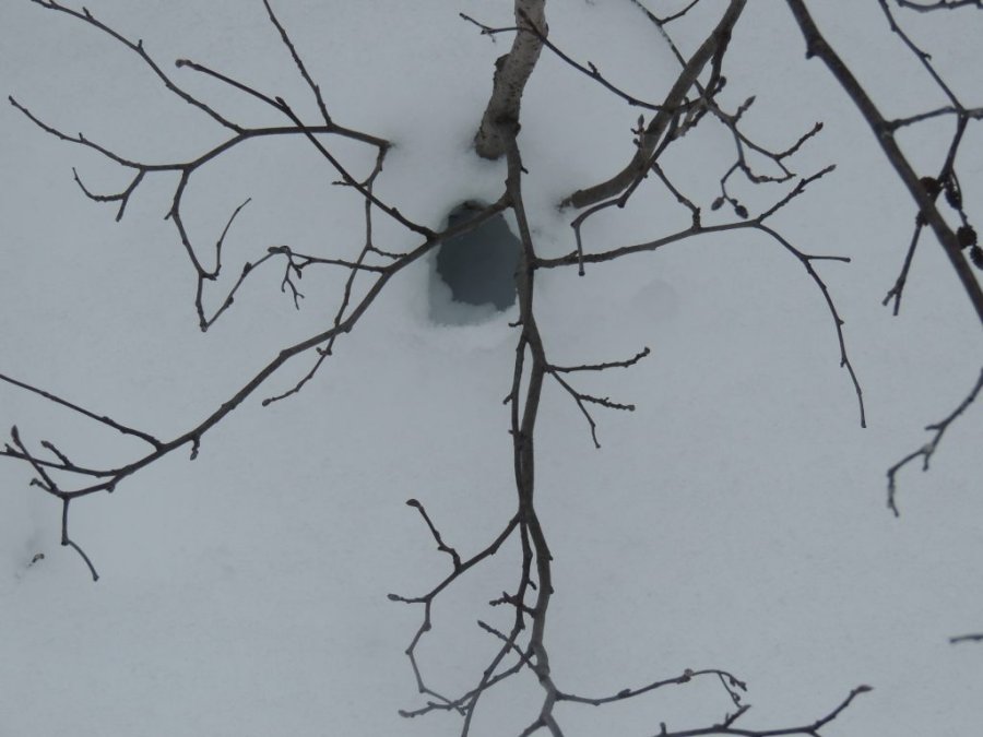 On voit des traces d’écureuils et des sorties de terriers de petits rongeurs.