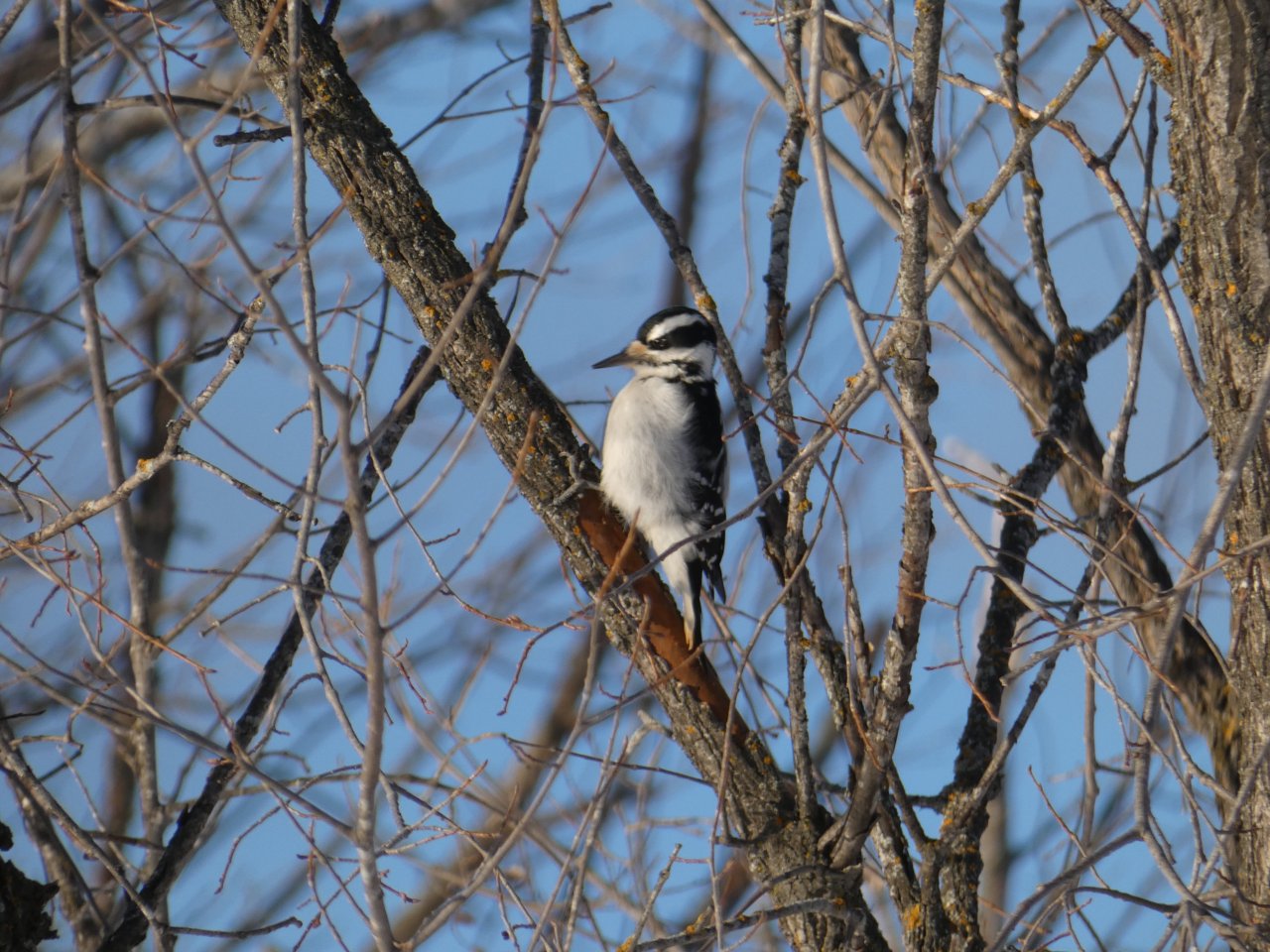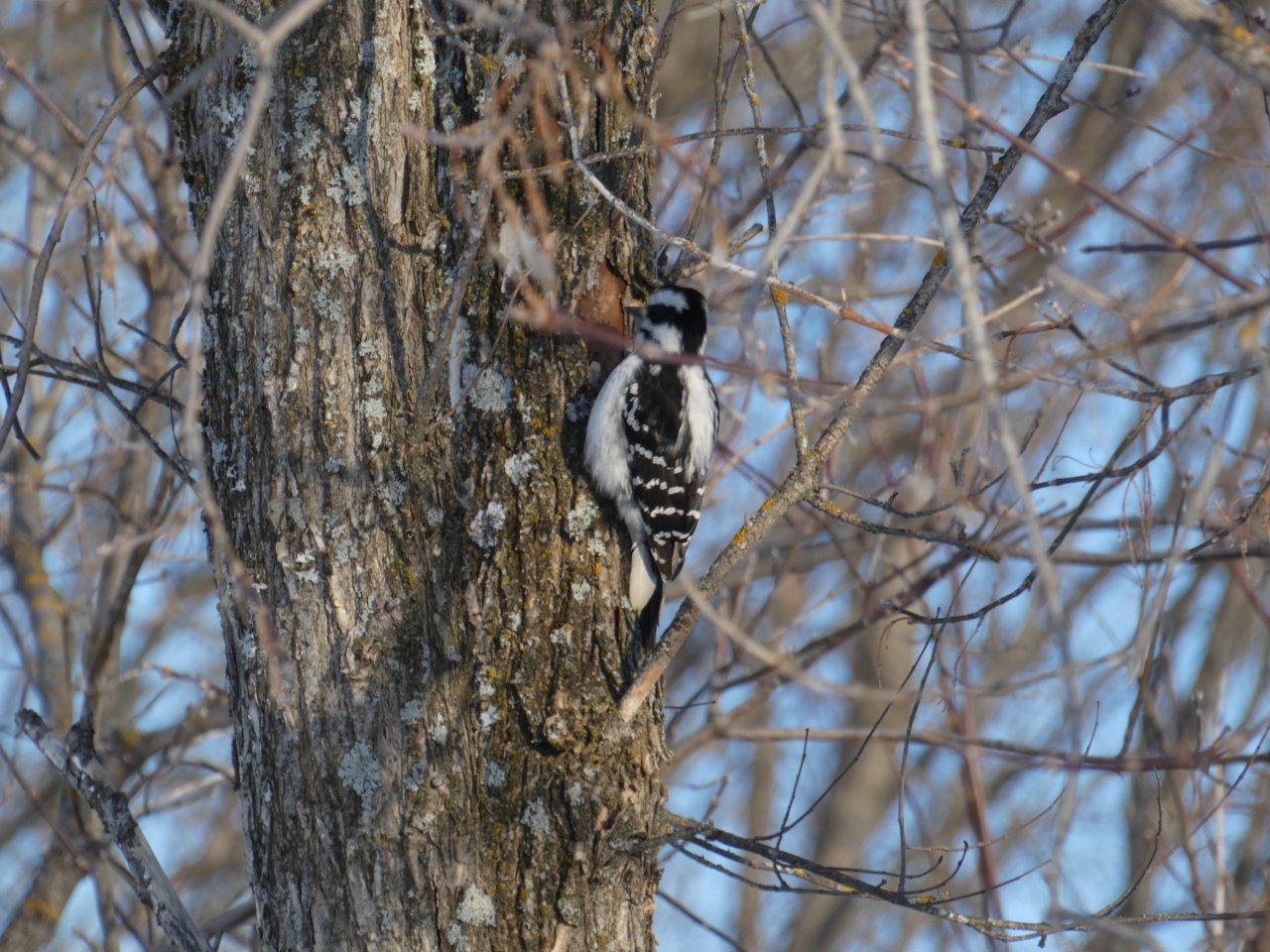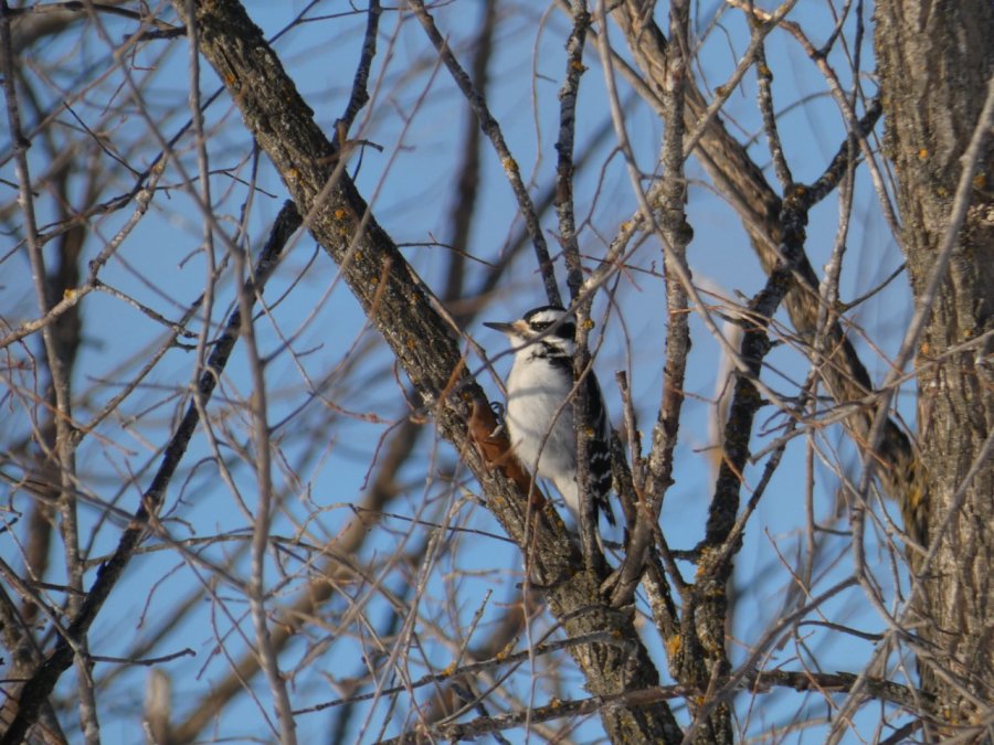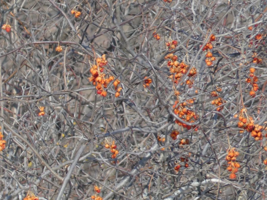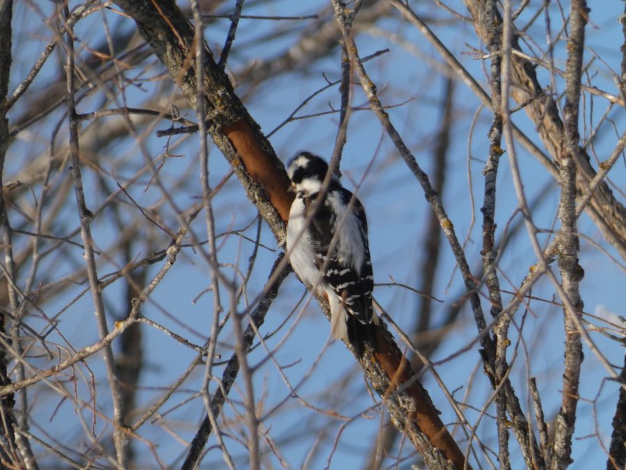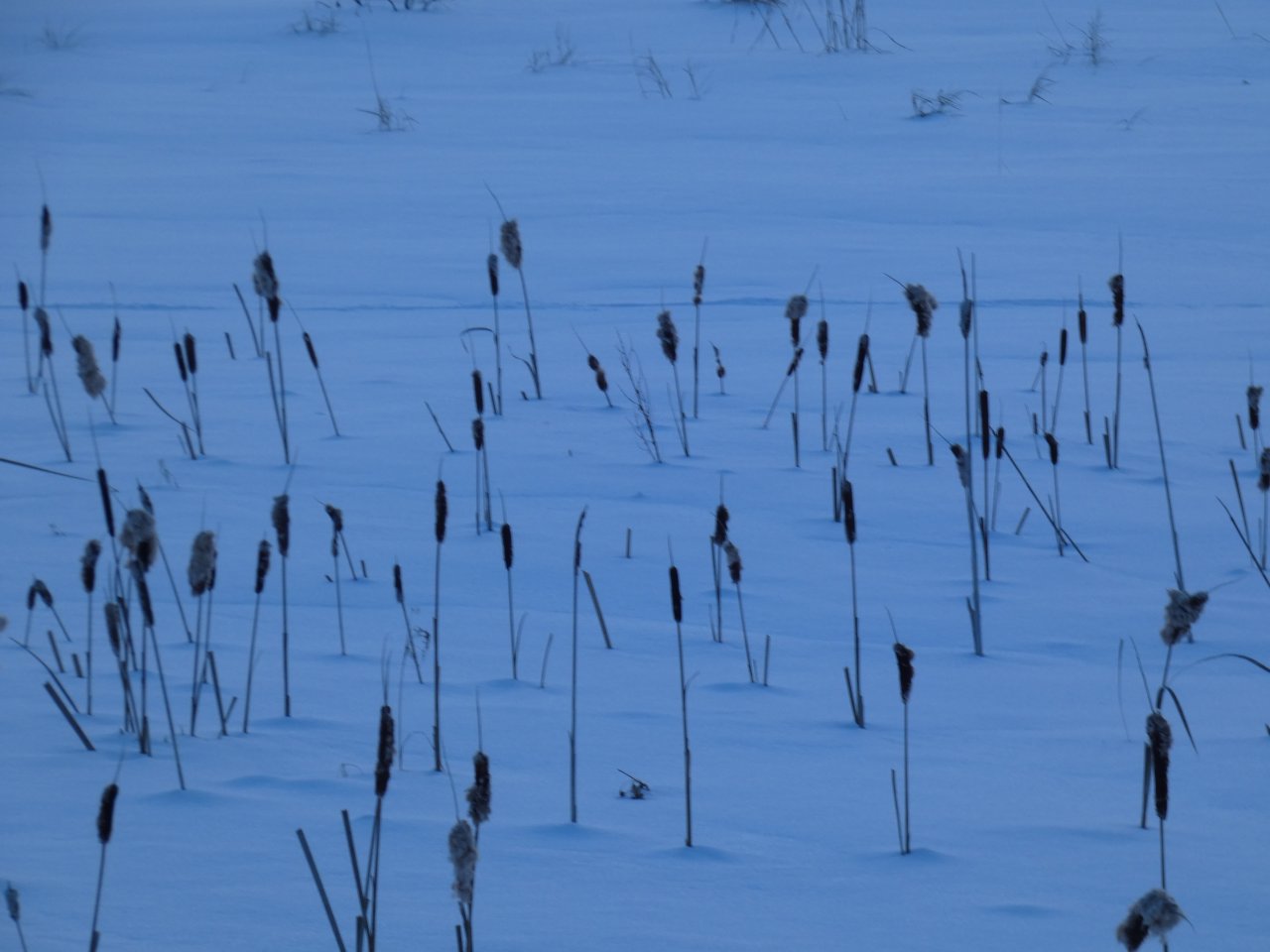 Je vois tous les jours ou presque un porc-épic qui de gave de bourgeons ou d’écorces dans un bouquet d’arbres. En dehors de quelques corbeaux, je ne vois rien d’autre sinon de rares traces de lapin, d’écureuils, de loups ou de coyotes. Depuis quelques jours, j’observe aussi les traces d’un renard qui cherche sa pitance avec difficulté. Cette année la neige est très épaisse, de 50 à 80 cm minimum selon les endroits.