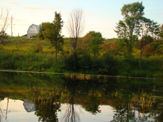 Un arbre commence à rougir, l’automne arrive, une mouette se baigne tranquillement et nous regarde passer. J’aperçois la grange, nous arrivons au moment où le soleil disparaît derrière l’horizon.