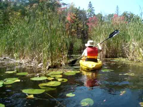Les nénuphars sont particulièrement prospères. Ils poussent tellement densément que les feuilles s’élèvent au-dessus de l’eau pour trouver de la lumière tellement la concurrence est vive. Nous apercevons quelques ouaouarons et de temps un temps des bandes d’alevins qui fuient à notre approche. Des martins-pêcheurs pêchent sans arrêt.