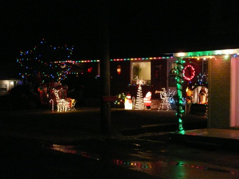 Dans certaines rues, la totalité des maisons sont illuminées. Toitures, fenêtres, haies, pelouses, la lumière jaillit de partout ! À certains endroits, des personnages articulés lumineux comme des rennes, des pères noël, des lutins, nous font signes et chantent des mélodies de noël.