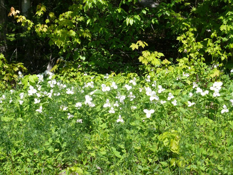 La trille des bois, emblème floral de l’Ontario fleuri abondamment les sous-bois.