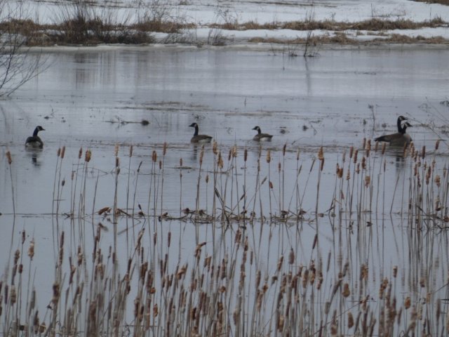 Depuis quelques jours, les températures montent, la neige fond, la rivièere se libèere de ses glaces. Depuis deux semaines, les oies, les carouges à épaulettes sont de retour. avant hier, j’ai pu observer deux grues du canada ainsi que des canards. Hier j’ai vu mon premier castor de l’année et des merles d’amérique !