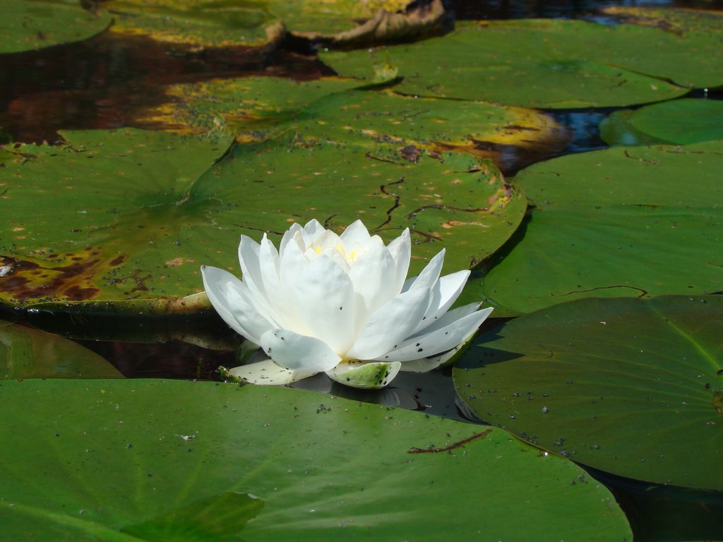 Nymphéas et pondétéries sont encore en fleurs.