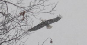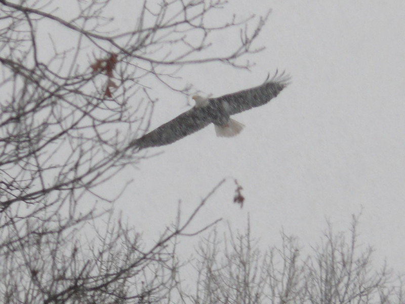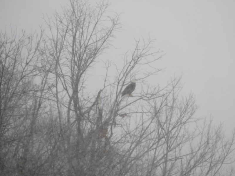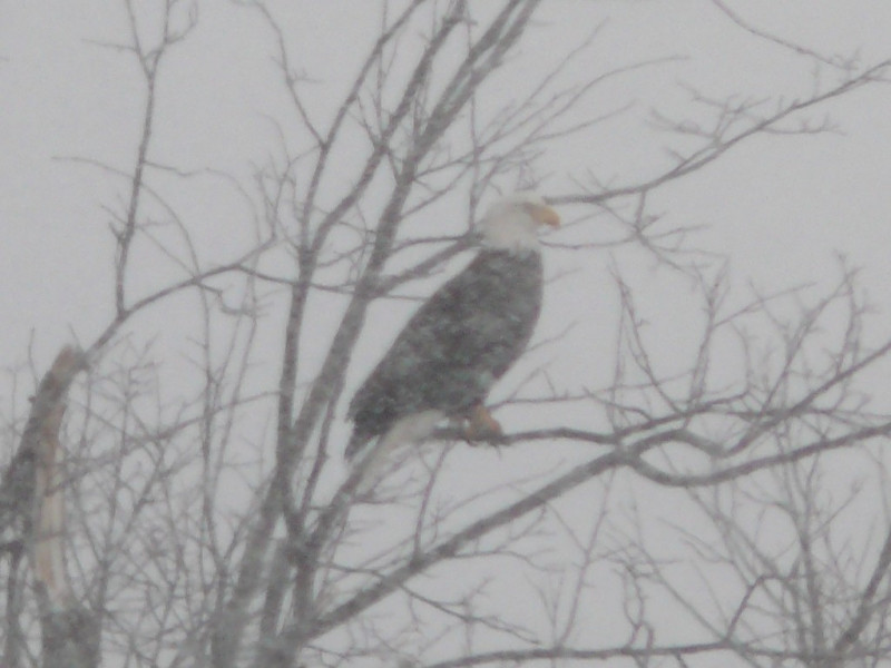 Le Pygargue à tête blanche, le plus majestueux de nos aigles en pleine tempête de neige.