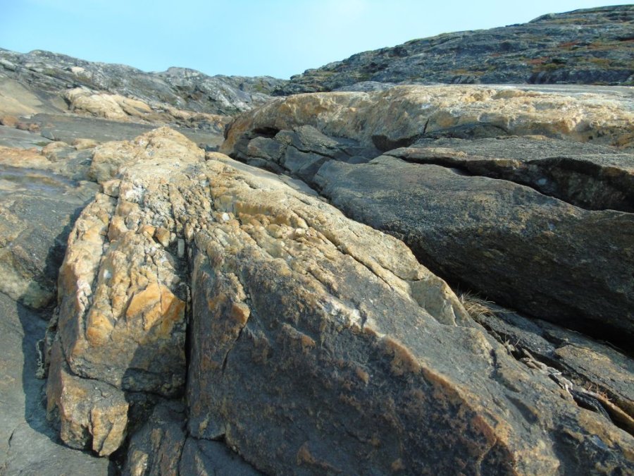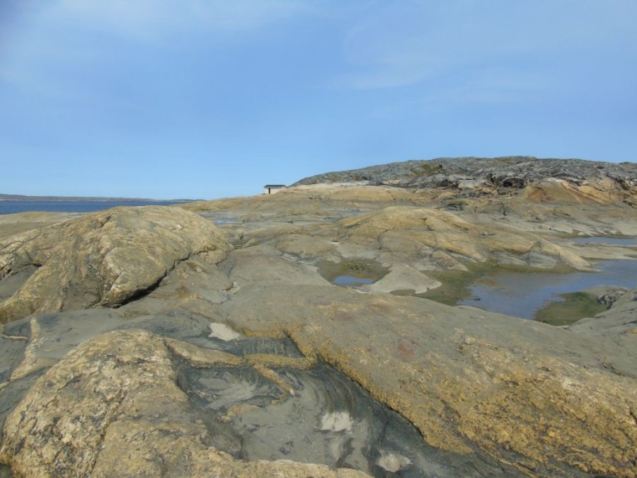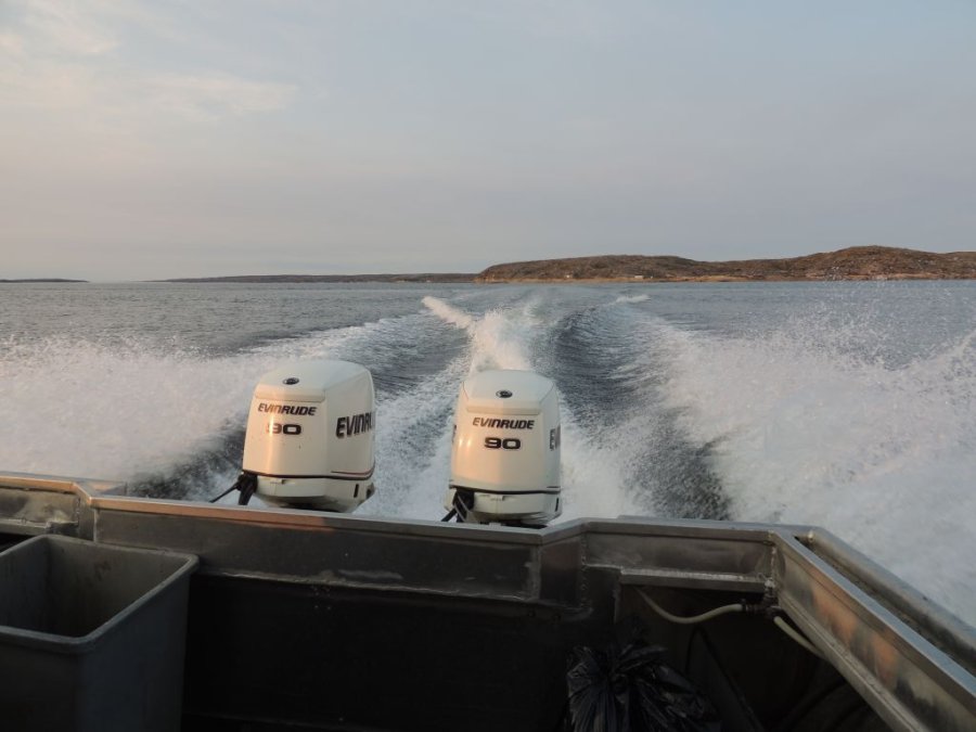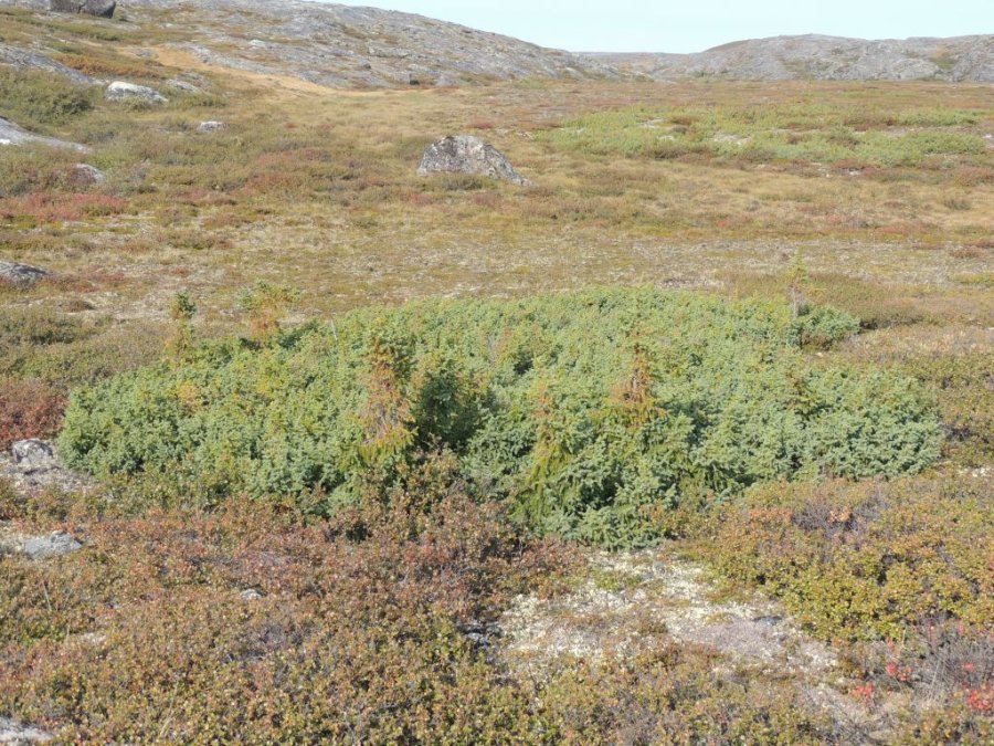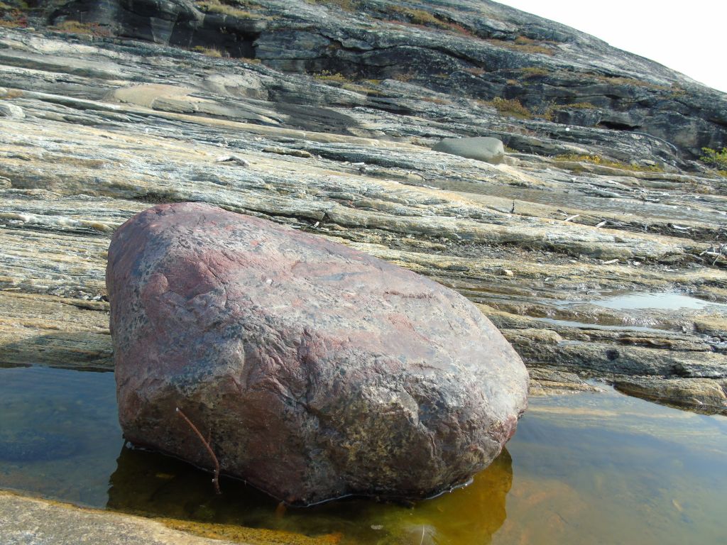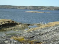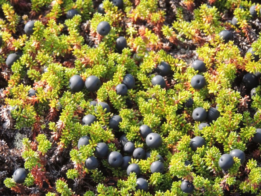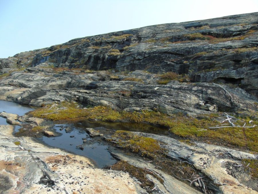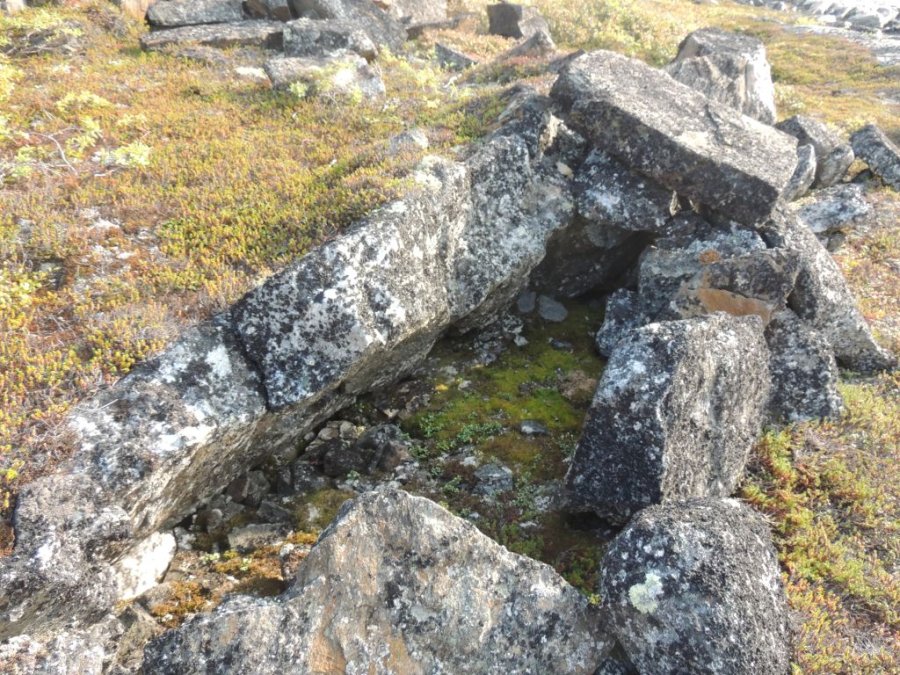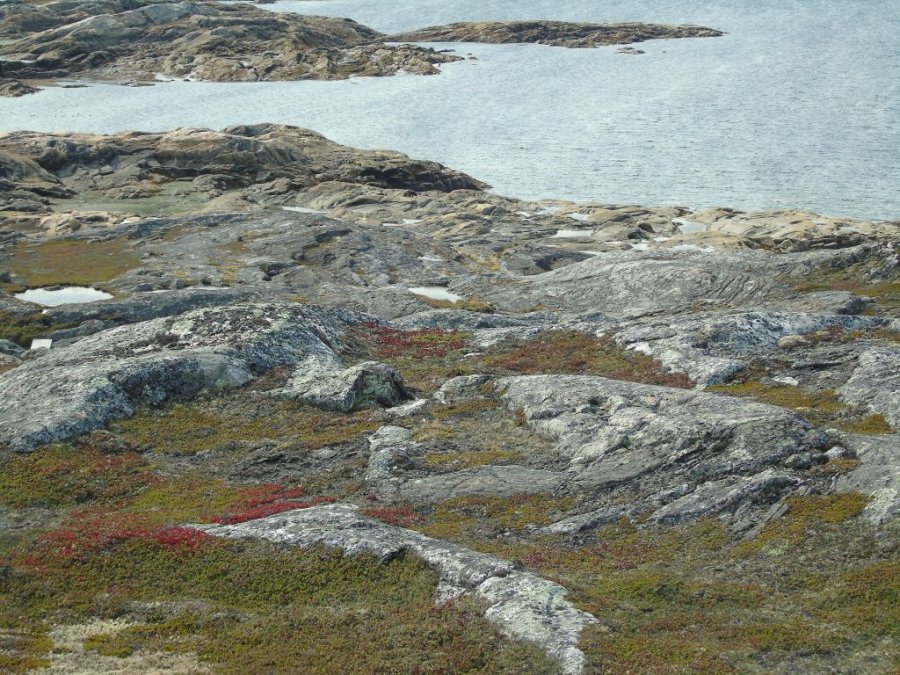 Nous partons le 2 septembre avec Allen Gordon et son puissant bateau a la découverte de la rivière Koksoak jusqu’à l’entrée de la Baie d’Ungava. En cours de route, nous avons eu le bonheur d’observer une famille de bœufs musqués. Nous avons croisé de nombreux canots, vu des bateaux de pêche sportive au saumon et nous sommes arrivés à l’embouchure de la Baie d’Ungava. Après la traditionnelle photo, nous sommes partis au camp d’Allen. Nous avons escaladé les rochers qui bordent la rivière pour nous rendre dans la Taïga. De vastes paysages avec des barres rocheuses, des petits lacs, des prairies me donnaient envie d’aller découvrir ce qui se cachait derrière la lige d’horizon. La taïga me fascine, m’attire. Ici tout est minéral, la végétation rase. Les roches sont couvertes de lichens, de bleuets, des cèpes poussent dans les endroits les plus inattendu. On peut matcher des jours et des jours sans obstacles et découvrir des passages sans cesse changeant. Par endroit, on se croirait dans des jardins japonais ou chinois. Sable, gravier, bonzaï, mousses, fleurs délicates et menue, tout y est. La toundra c’est zen, c’est attirant, c’est reposant et régénérant. Hélas, la belle période, sans neige, sans glace ou sans moustiques ou simulie est courte ! Cela rend son exploration encore plus plaisante ! Allen et sa famille nous ont invité à manger des plats traditionnels et il nous a montré des sites archéologiques en nous expliquant la vie des anciens Inuits. Ce fût une extraordinaire journée de découverte. Merci Allen.
