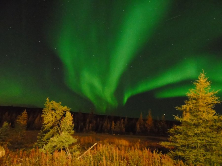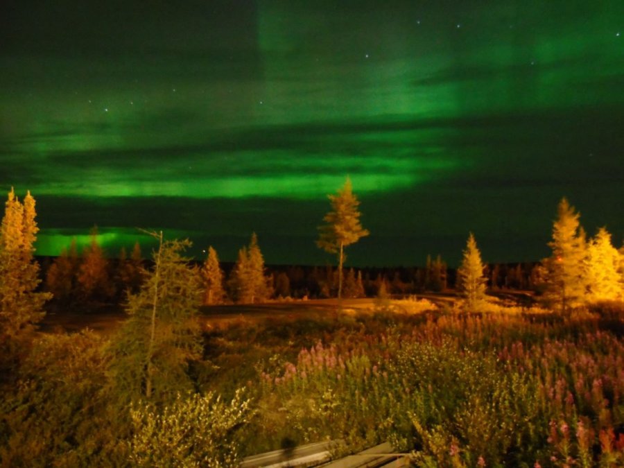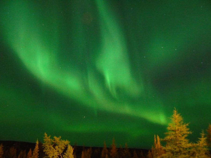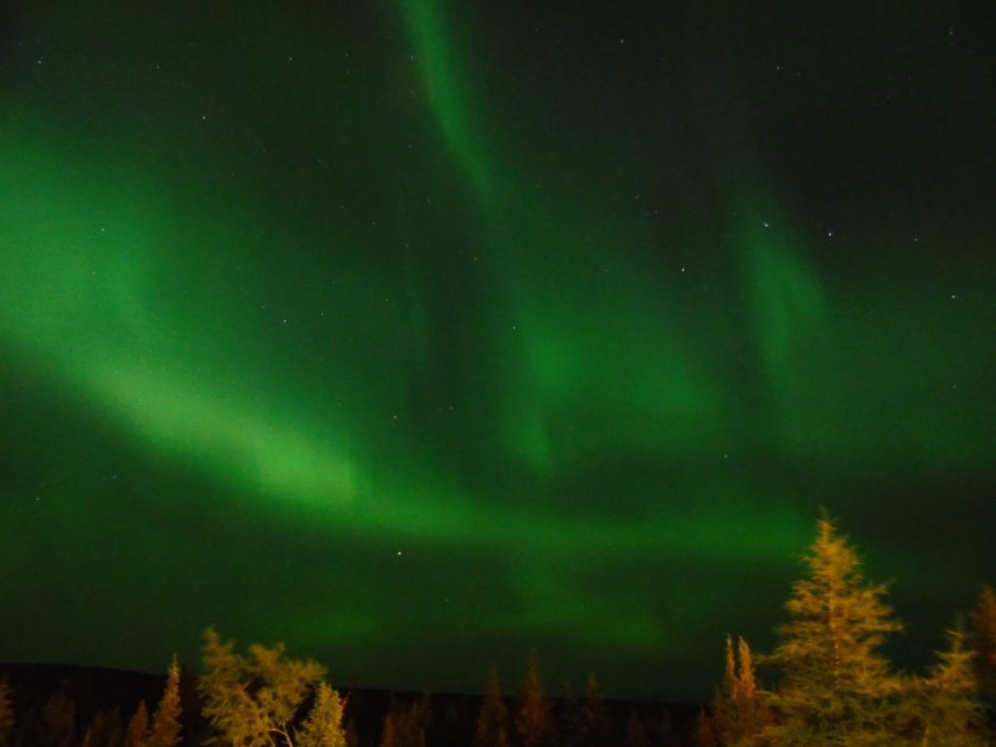 Je viens de passer u mois à Kuujjuaq. Toutes les nuits j’ai guetté les aurores, les premières semaines, il y en avait tous les soirs mais très faibles. J’ai marché dans la nuit, cherchant des lieux sympa pour les photographier. Ce sont celle que vous pouvez voir dans les photos ci-dessous. Puis, les sites web de météo spatiale ont annoncé de forte probabilité d’observer des aurores d’une force exceptionnelles… C’était trop beau… il a fallu que la météo s’en mêle ! pluie, nuages m’ont masqué ces aurores exceptionnelles que j’ai pu admirer sur internet … Elles étaient visibles de partout, sauf d’où j’étais !