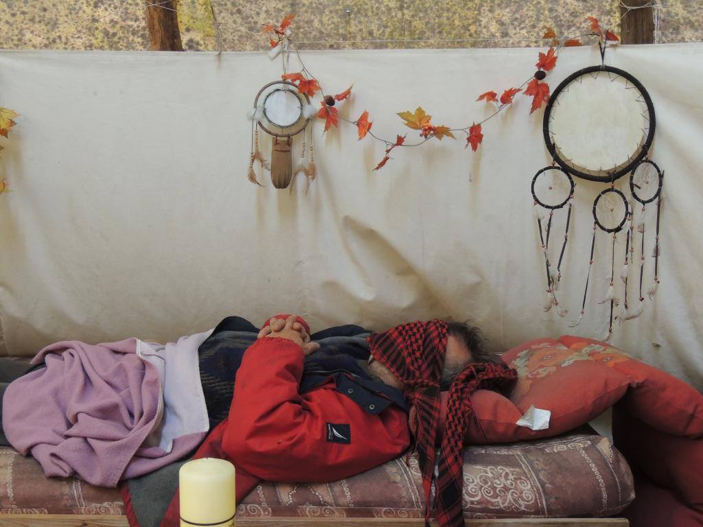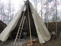 Mon grand tipi, 24 pieds soit 7m30 de diamètre, c’est déchiré lors d’une tempête cet automne.