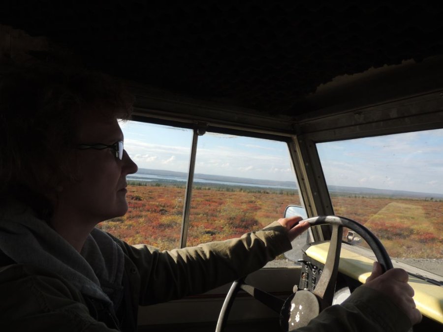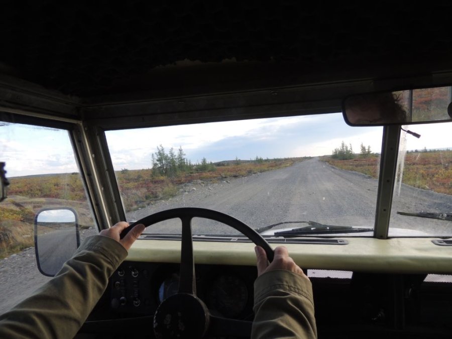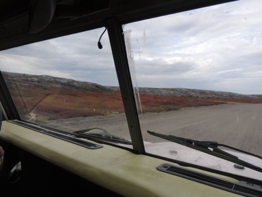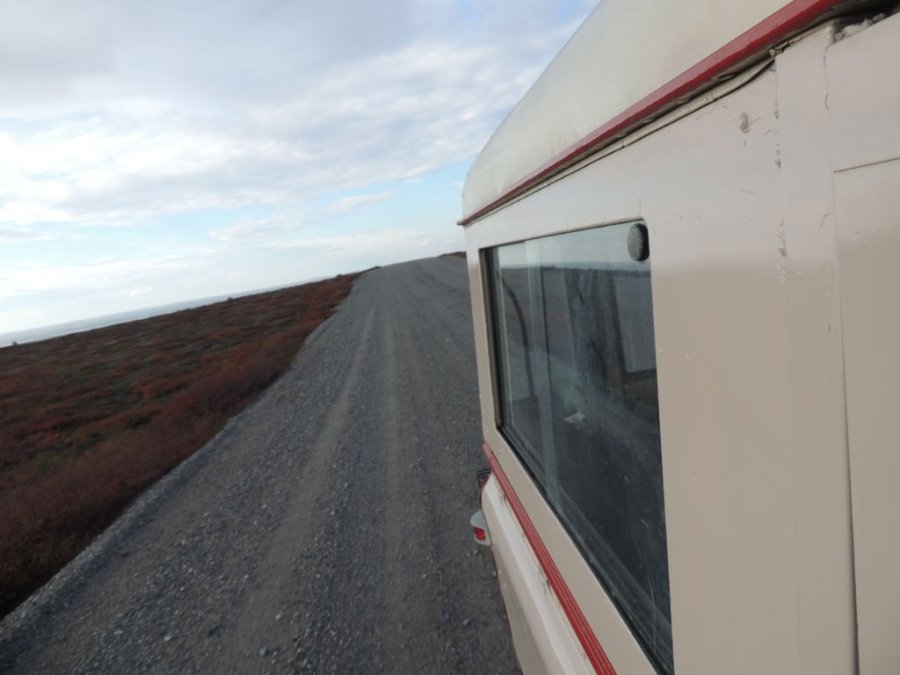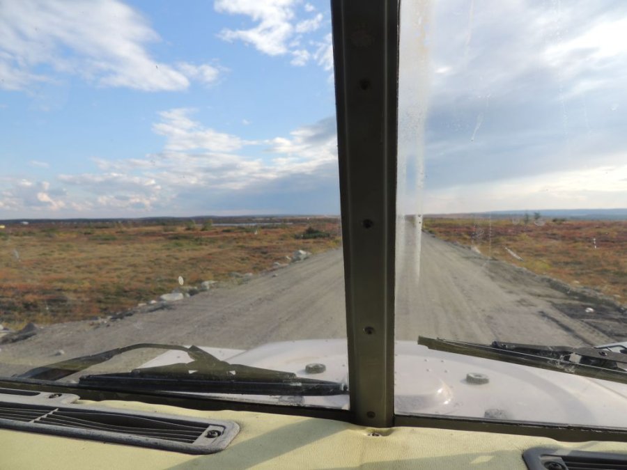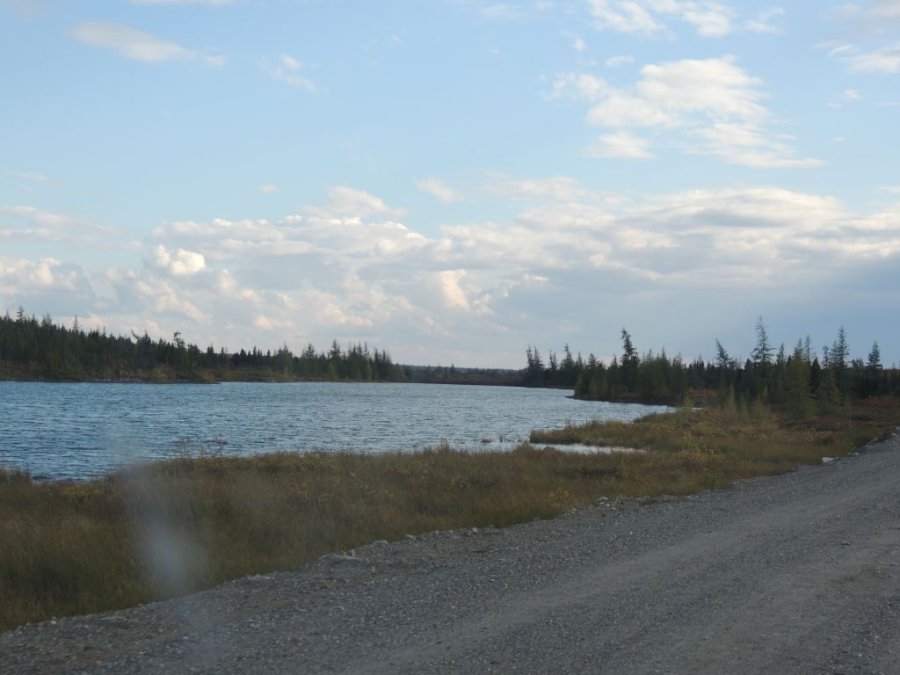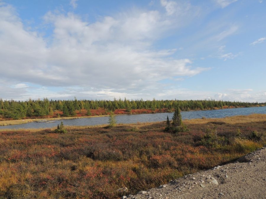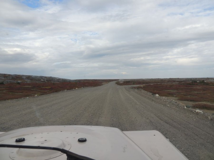 La route est belle. Elle traverse la toundra sur des hauteurs, par moment elle domine la rivière Koksoak et on peut voir dans le lointain de la Taïga et des lacs immenses. De toute beauté !