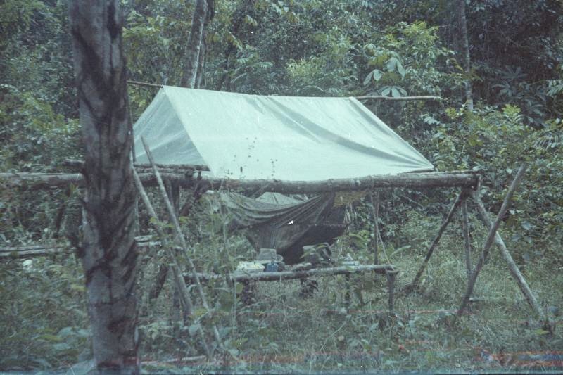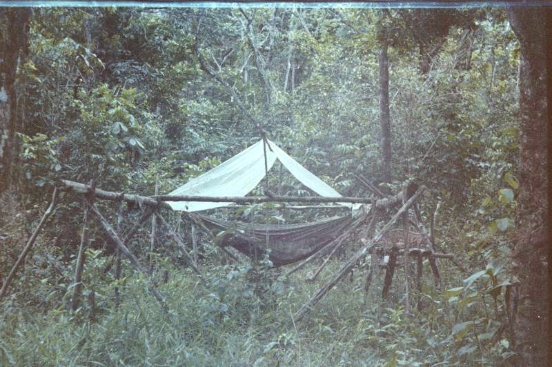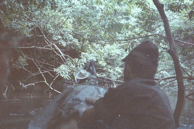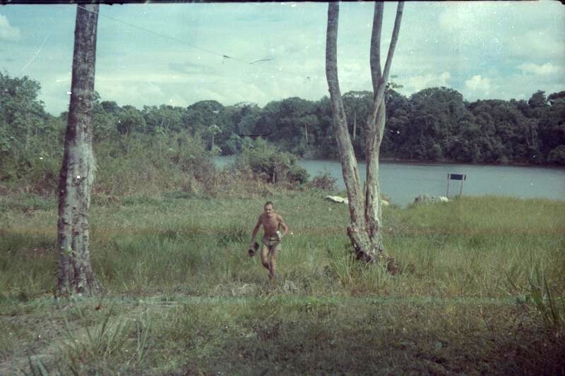 Comme hors d’œuvre, nous avons fait du combat dans les montagnes de Kaw. Nous sommes partis de la route de l’est, nous avons traversé la Comté à la nage, été au placer Trésor. De là nous avons « attaqué » le camp du BRGM sur la route de Kaw. Toute une aventure… mais j’ai attaqué les cuisines pour faire diversion et fait le plein de victuailles… grenadé (grenade à plâtre) la jeep du lieutenant colonel qui était en inspection au retour… Nous avons réussi notre mission mais le colonel a moyennement apprécié la destruction de son repas et le plâtre. Nous sommes avons donc été privé des pirogues qui devaient nous ramener aux camions. Nous avons refait le chemin en sens inverse à pied, nous nous sommes perdus, la radio était en panne d’émission… et nous sommes restés trois jours à marcher sans rien à manger… Arrivé aux camions, au lieu de rentrer à la caserne, nous avons été envoyés à Kaw ratisser 25 km 2 de marais pour trouver un avion qui c’était écrasé, en tenue de combat et avec nos brelages… pour nous féliciter pour nos exploits. Lire le récit.