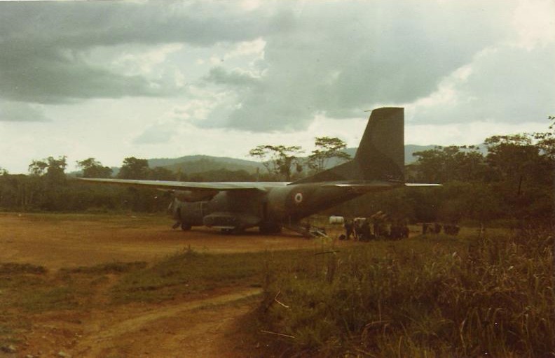 Je me rends à Paris pour prendre un DC10 militaire à destination de Fort-de-France en Martinique. À la sortie de l’avion, je suis dirigé vers un camp de vacances de l’armée à l’Anse à l’Âne. Après une journée de farniente passée à la plage, j’apprends qu’un avion part pour Cayenne et qu’il y a des places. Je me propose et pars avec sept autres volontaires dans un Transal séance tenante pour la Guyane. Voyager en Transal, c’est toute une aventure. La soute est aménagée pour le transport des marchandises ou des parachutistes, mais pas pour des passagers. Lorsqu’au milieu de l’océan, un moteur tombe en panne, cela déclenche l’hilarité des pilotes. Pour nous rassurer, ils nous racontèrent que lors du voyage précédent c’était l’autre moteur qui avait lâché, la routine, quoi !