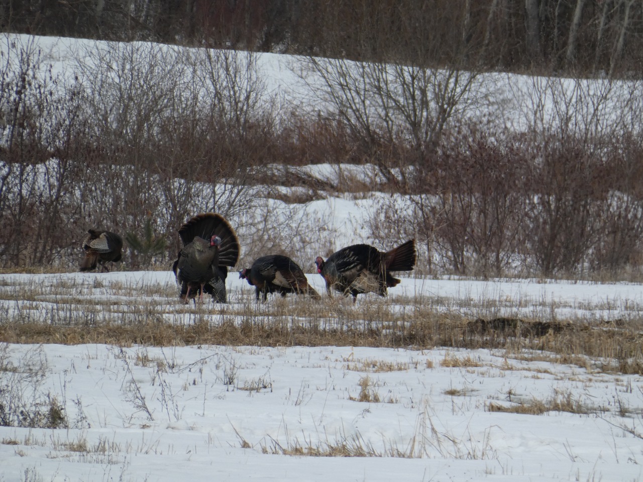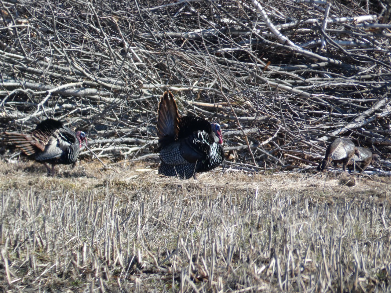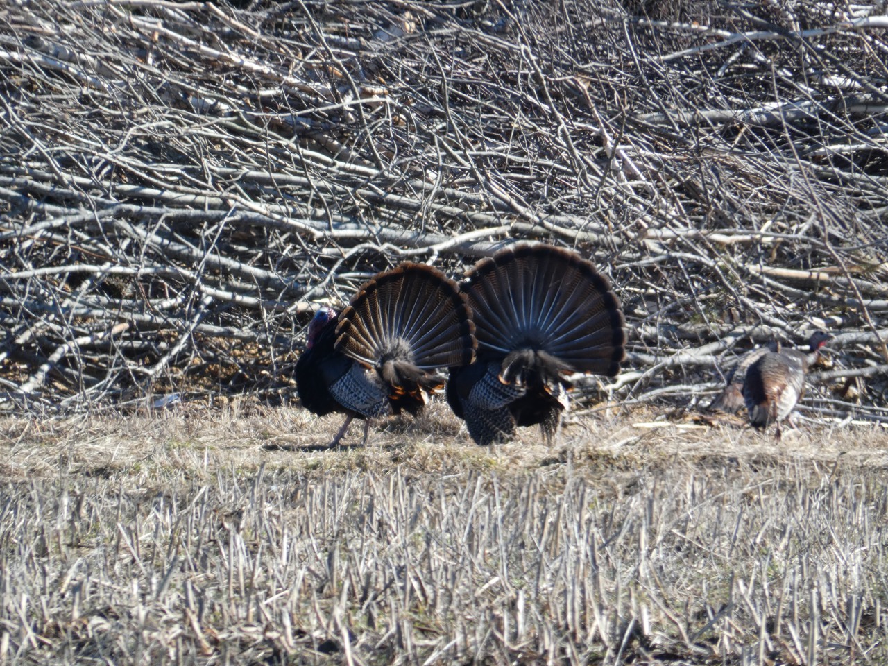 On voit des centaines de cerf de Virginie, des dizaines de dindons avec des parades nuptiales ou les dindons font la roue pour charmer leurs belles. Il y a des rapaces partout, des bandes de bernaches crient en tous sens, on voit de plus en plus d’espèces d’oiseaux.