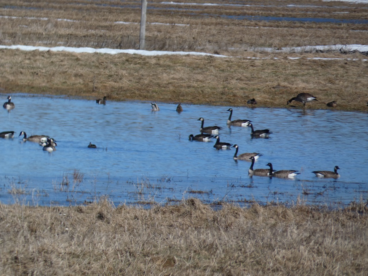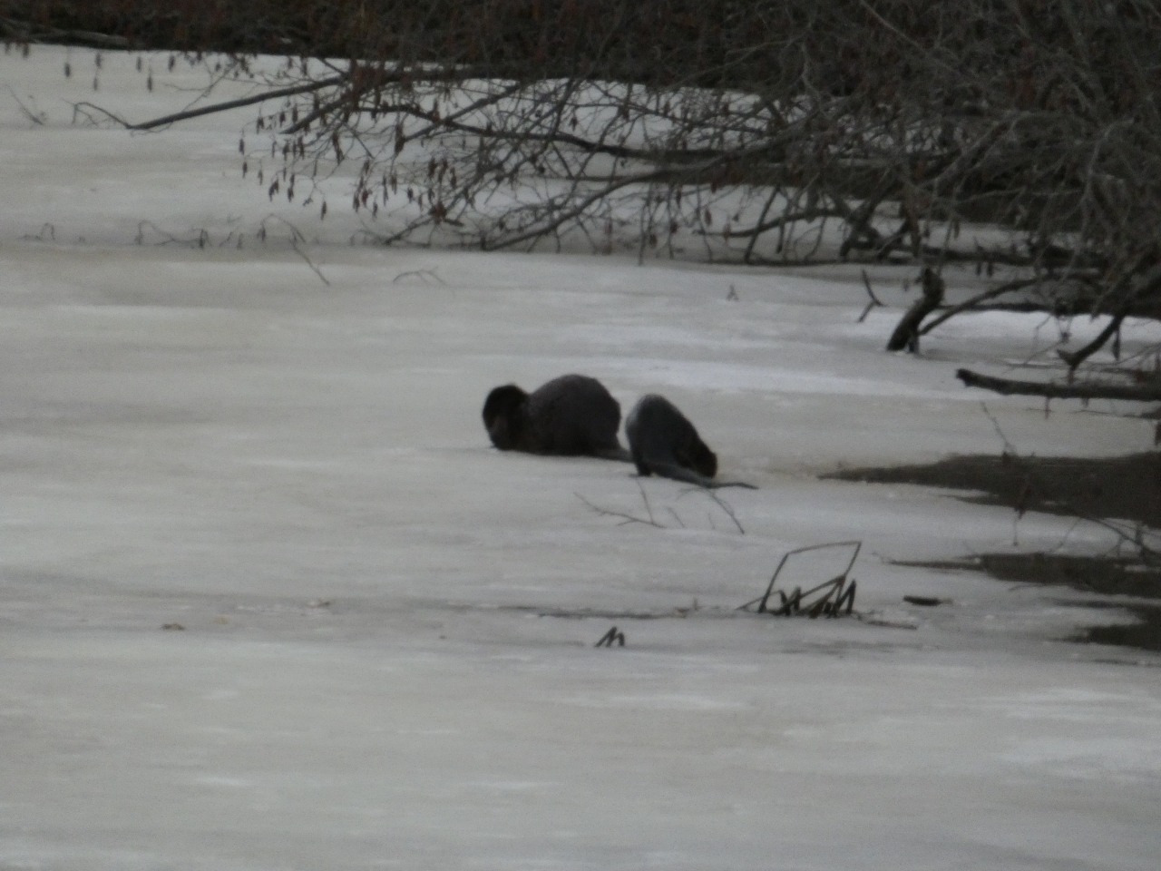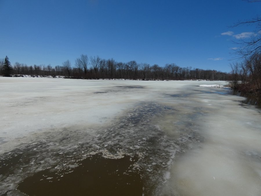 Sur la rivière, la glace fond. les rats musqués, les castors sont de sortie, les loutres pêchent, une multitude de canards barbotent. Un raton laveur pique la nourriture de mes chats et une moufette a parfumé mes chiens ! c’est le printemps !