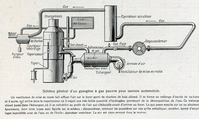 Le Gazogène, inventé au XIXe siècle, est un appareil permettant de produire un gaz combustible à partir de matières solides et combustibles tels que bois, charbon de bois, coke ou anthracite, permettant d’alimenter des moteurs spéciaux, dits à gaz pauvres, des moteur à explosion classiques ou bien des chaudières.
