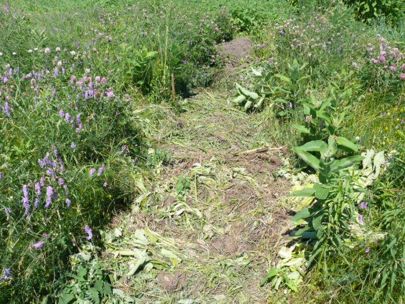 Le désherbage cette année est difficile car les pluies incessantes favorisent les mauvaises herbes.
