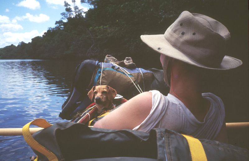 Le Klepper, kayak pliant d’expédition, est un membre à part entière de nos aventures. Il se démonte en 10 minutes, se range dans trois sacs et peut prendre l’avion avec nous. Nous l’avons acheté en 1995 en Allemagne et il a parcouru lors de nos entraînements mers, lacs et rivières calmes ou sportives. Il a affronté l’Approuague et l’Oyapock sans coup férir malgré les terribles rapides qu’il a affronté et les chocs important qu’il a subit. Maintenant nous l’utilisons sur les fleuves et rivières du Canada avec beaucoup de plaisir.