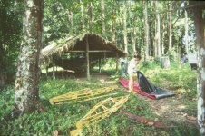 Je peux le démonter, le transporter facilement en avion, en pirogue, en bus, en auto. Je peux le transporter à pied dans un sac à dos (la peau) plus deux sacs pour les armatures. Comme j’ai la bougeotte, il peut me suivre partout !