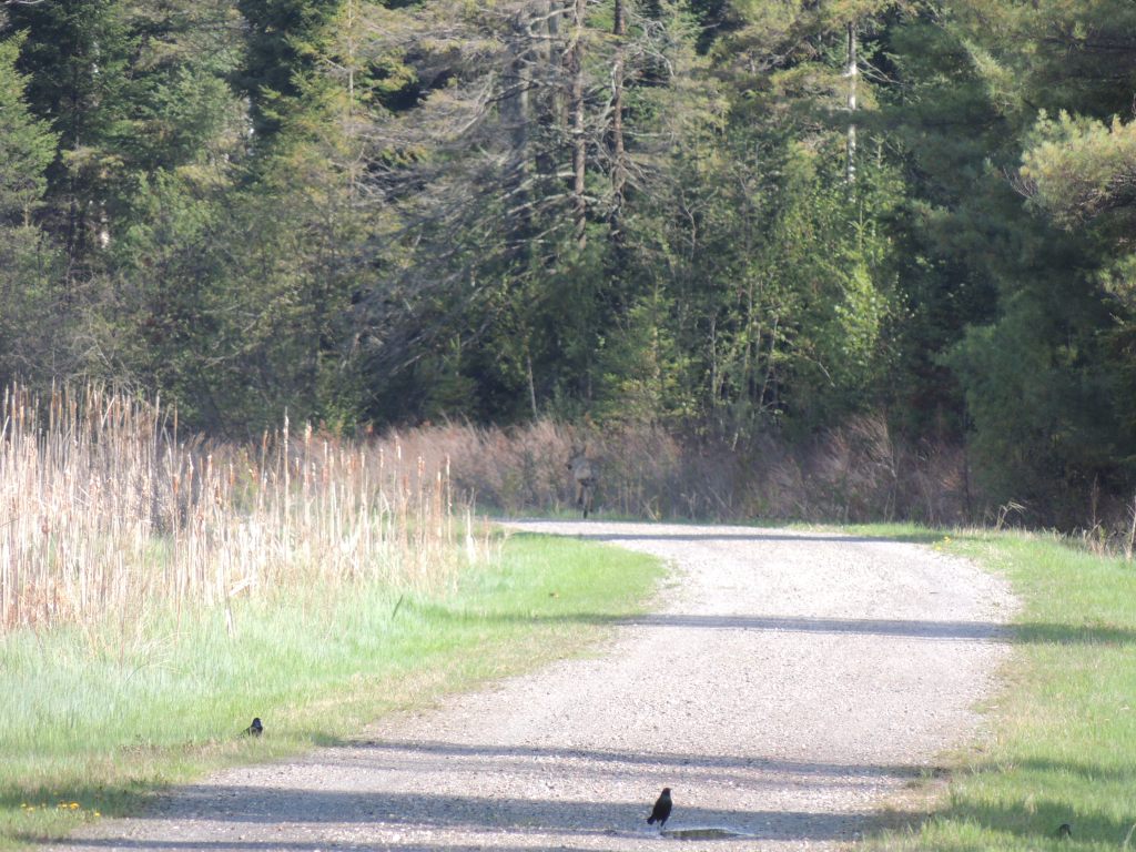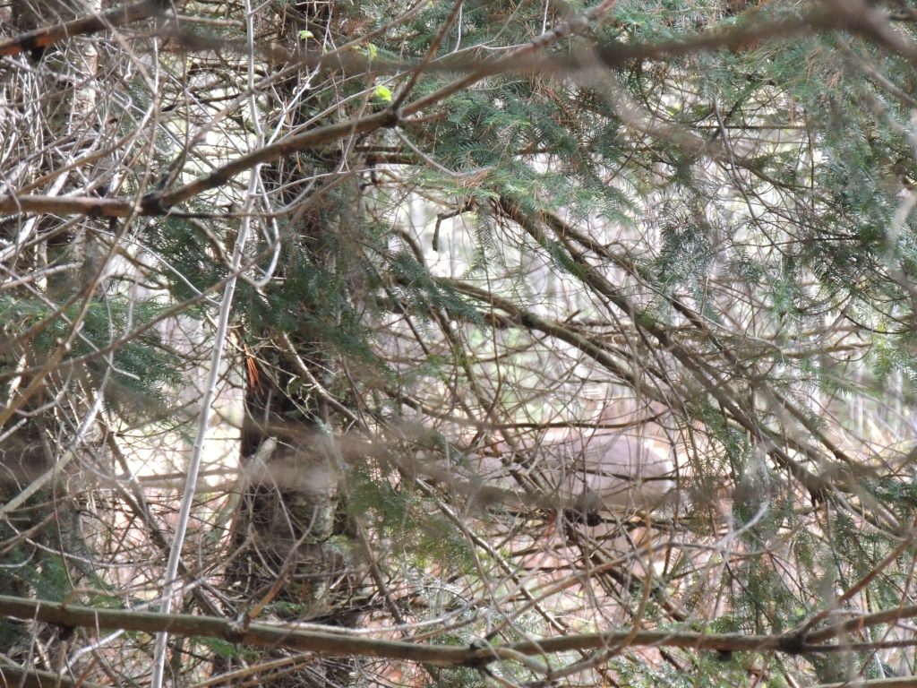 J’entend des gelinottes faire leur parade nuptiale. Le mâle fait un bruit sourd qui ressemble à un vieux diesel monocylindre poussif qui a du mal à démarrer !