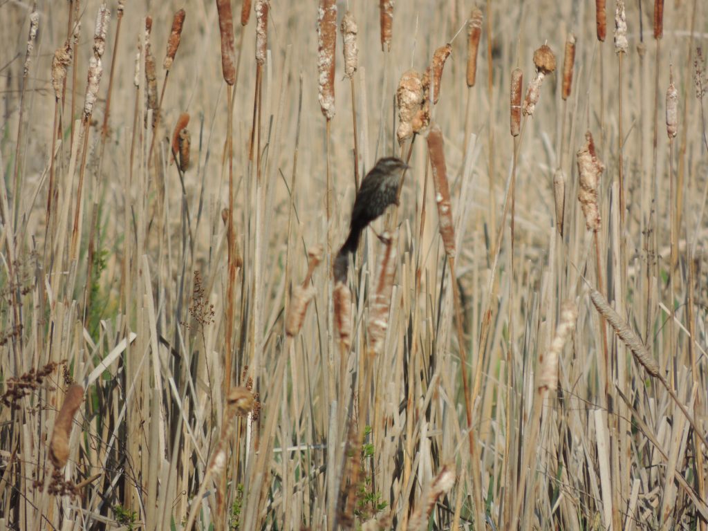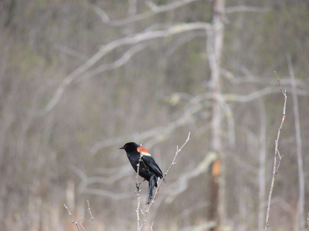 Je traverse le marais, regarde des canards, des carouges à épaulette, des rapaces, observe des grenouilles et j’arrive là ou se tenait le coyote.