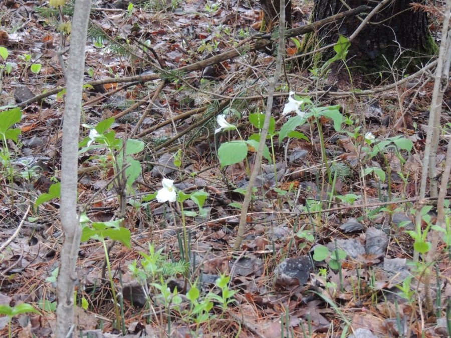 Je rentre dans un bois. J’y vois des trilles en grand nombres, emblème floral de l’Ontario et plaisir pour les yeux. Elles sont en retard cette année.