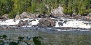 En continuant le chemin qui passe entre le lac Jim et le lac Galarneau, on arrive à la tête du rapide des Enragés.