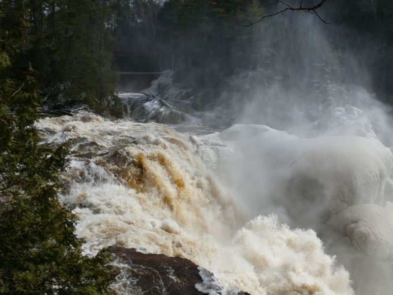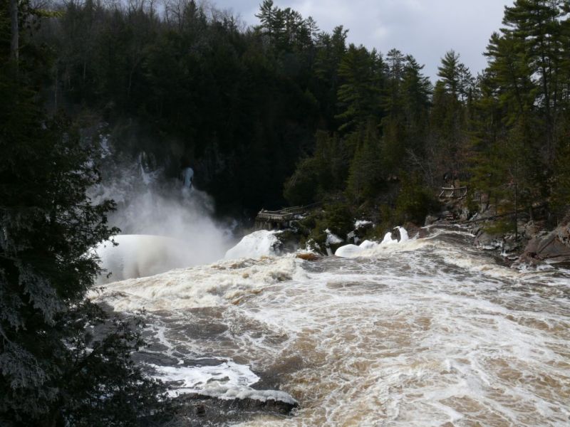 Arrivés aux chutes, nous nous rendons directement vers les passerelles et belvédères pour admirer les chutes gonflées par l’eau de fonte des neiges.