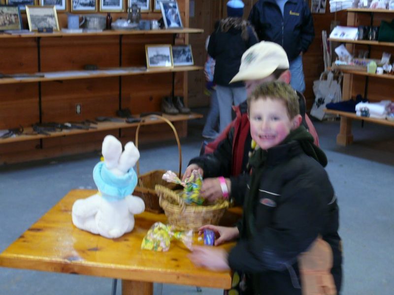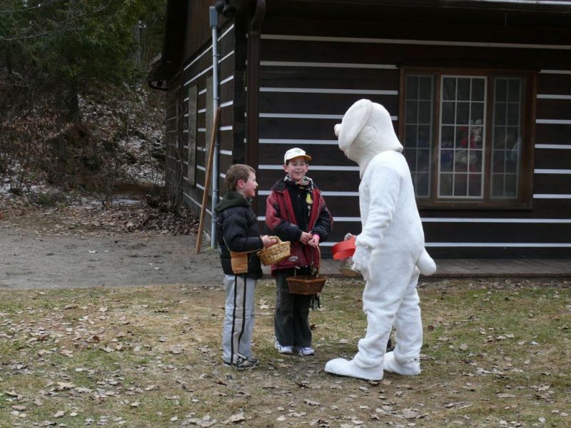 Arrivé au chalet des chutes, un lapin offre des œufs de Pâques aux enfants