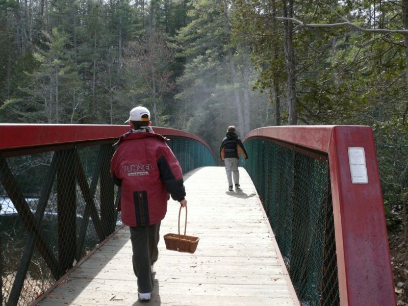 Du milieu de la passerelle, on aperçoit le belvédère qui est face à la grande chute.