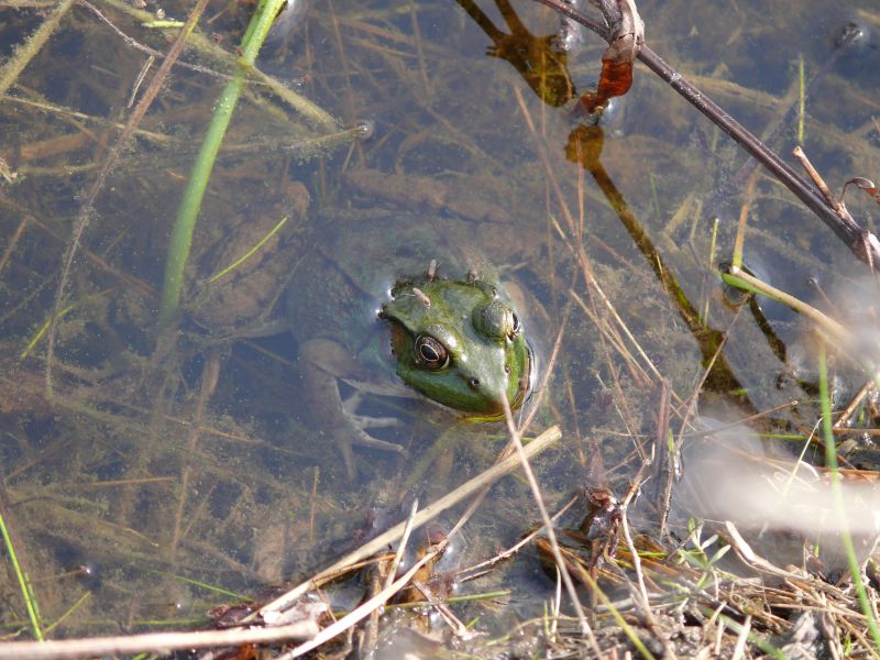 - La Grenouille verte (Rana clamitans), qui est une espèce d’amphibien de la famille des Ranidae