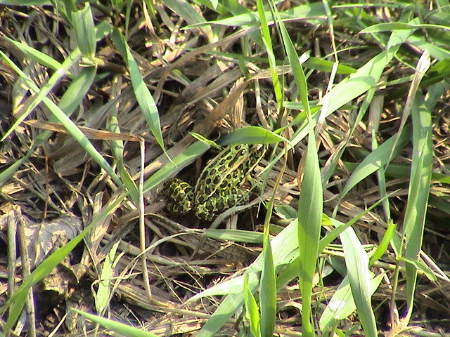 - La Grenouille léopard (Rana pipiens), qui est une espèce d’amphibien de la famille des Ranidae