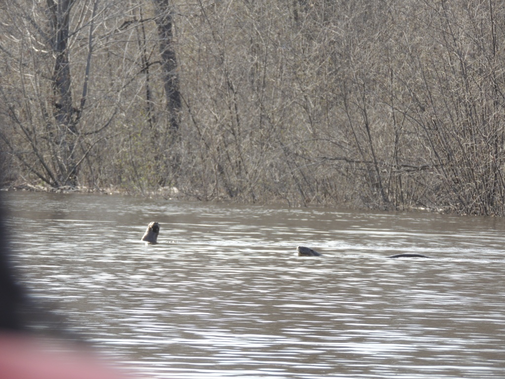 Nous arrivons au quai et nous apercevons deux loutres, peu farouches qui se laissent dériver, tête hors de l’eau, nous observant. On fait quelques photos et nous mettons le Klepper à l’eau.