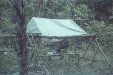 Nous devons partir en manœuvre attaquer le Camp Caïman, sur la piste de kaw. À l’époque, c’était un ancien camp du BRGM (bureau de recherche géographique et minier) abandonné. Nous devons partir de la route de l’est, traverser la jungle à pied, puis le fleuve comté à la nage, re-jungle et en arrivant par le placer trésor, ma section attaque un dépôt d’essence sur la route du dégrad Lalane. L’opération c’est bien passé. Avec quelques compagnons, j’ai fait diversion en pillant les cuisines adverses alors qu’une réception était en préparation et grenadé la Jeep du lieutenant-colonel qui était à la fois arbitre, observateur neutre et frustré d’un bon repas… permettant ainsi au gros de la troupe d’accomplir leur mission sans coup férir.