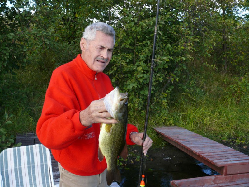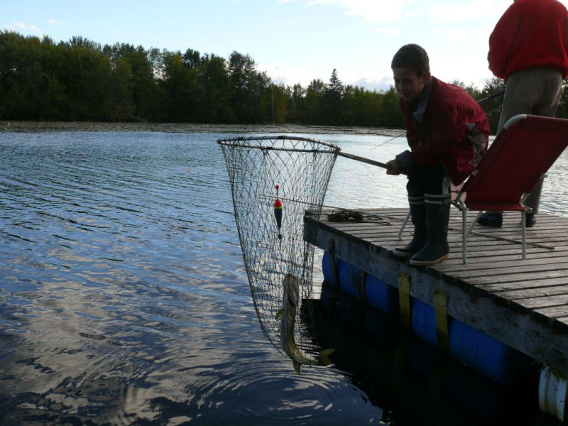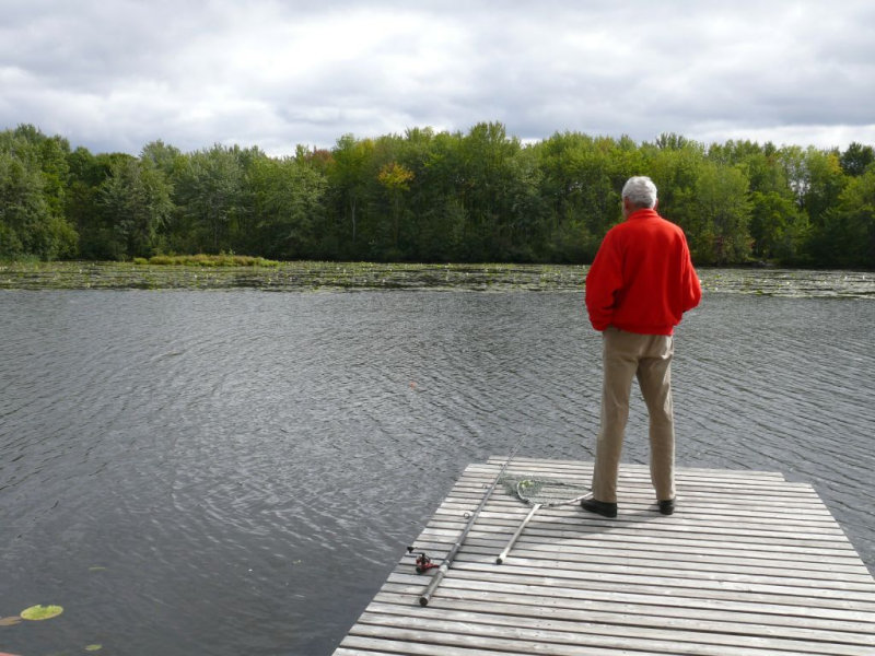 Partie de pêche au brochet au vif sur le quai de la résidence de tourisme du Val à l’âne dans la rivière des Outaouais en mi-septembre.