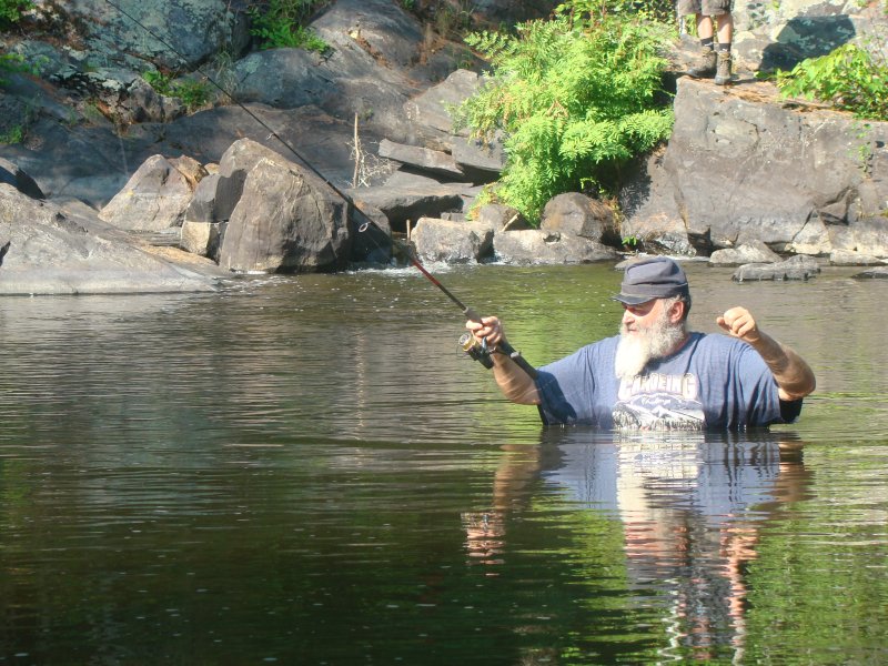 J’ai attrapé avec des cuillères mouche en ultraléger quelques très gros crapets soleil, des achigans, des ménés, des truites de ruisseau. Mon hameçon est sans ardillon, ce qui me permet de remettre les poissons à l’eau sans blessures.