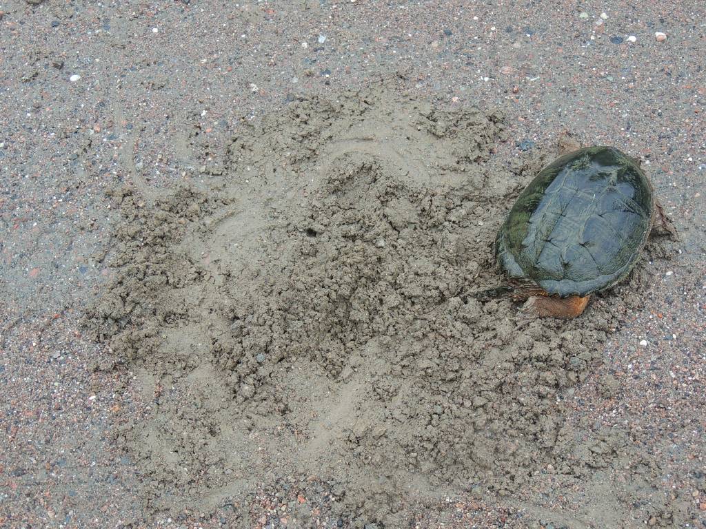 Les aires de pontes naturelles ont bien souvent disparues à cause de l’urbanisation, des chalets,... en plus cette année l’eau est haute et les rares plages naturelles encore sauvage sont noyées.