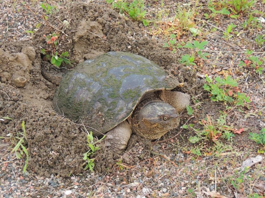 C’est ainsi que cette année, j’ai vu une tortue vouloir pondre dans un tas de saletés diverses sur un pont de bois au-dessus d’un ruisseau et une autre au milieu d’un chemin ouvert à la circulation automobile.