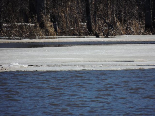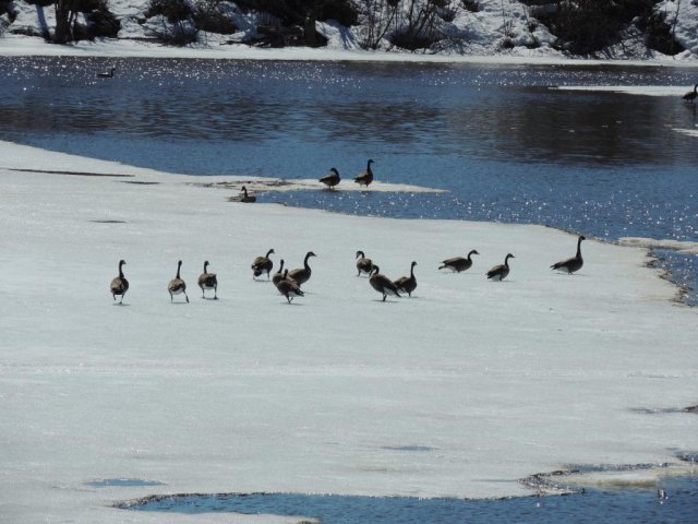Aujourd’hui il faisait grand soleil, ciel bleu. Nous sommes partis jumelles et appareil photo en bandoulière nous promener. En deux jours, la glace qui était sur la rivière a presque fondue.