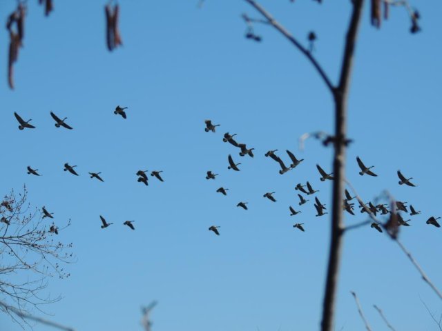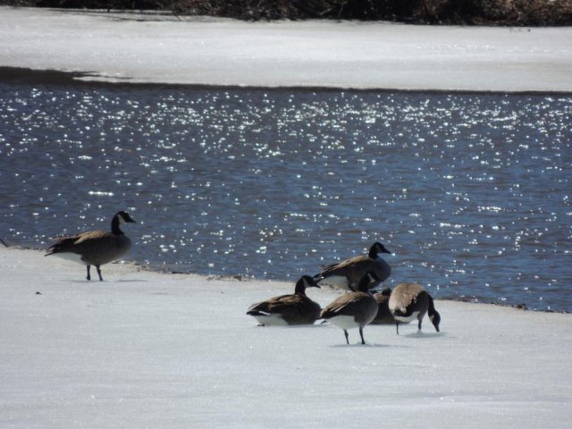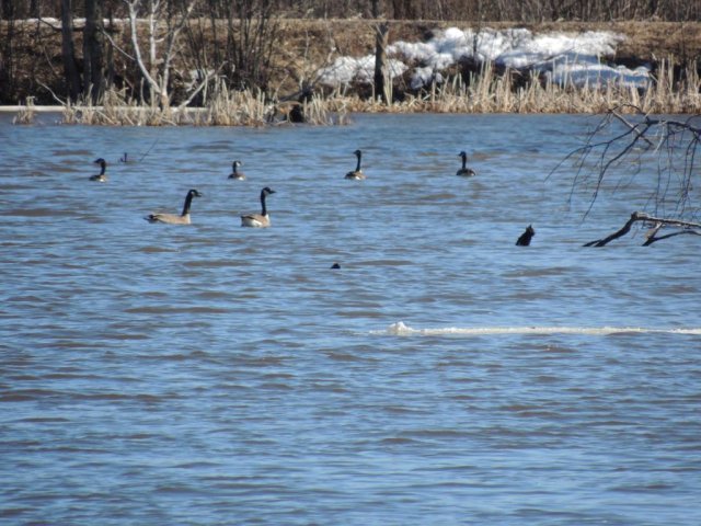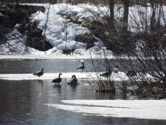 On a vu des rats musqués, des bernache, des harles, des garrots à oeil d’or. dans les bois, des mésanges à tête noire, des bruants chanteur, un carouge à épaulette et un urubu. Sur la piste cyclable, j’ai vu un faucon. Il y avait des traces impressionnantes d’un énorme cerf de Virginie. Par ses traces je l’ai vu marcher puis courir en faisant des bons de plus de 2 mètres !
