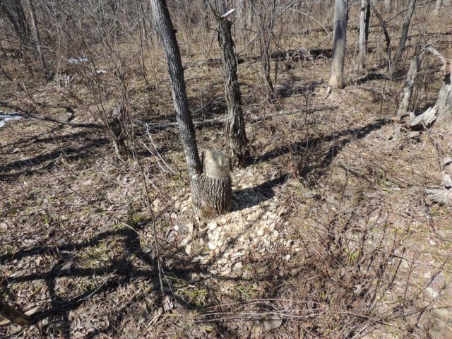 On a traversé un bois ou l’automne dernier les castors ont abattu de nombreux gros arbres. Impressionnant, ils en on débités certain entièrement, il ne reste que la souche et de la sciure au sol.