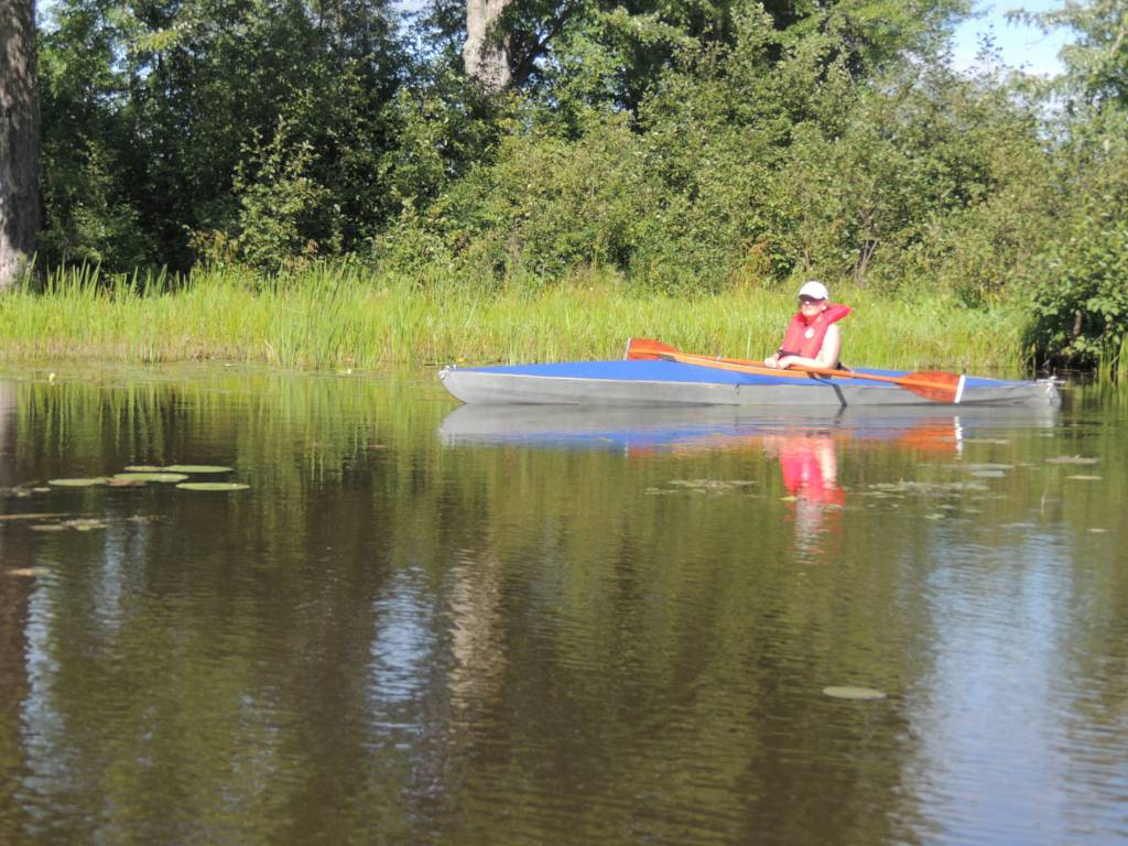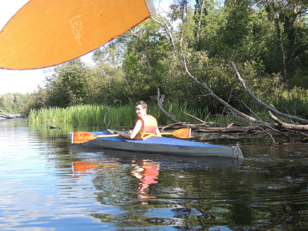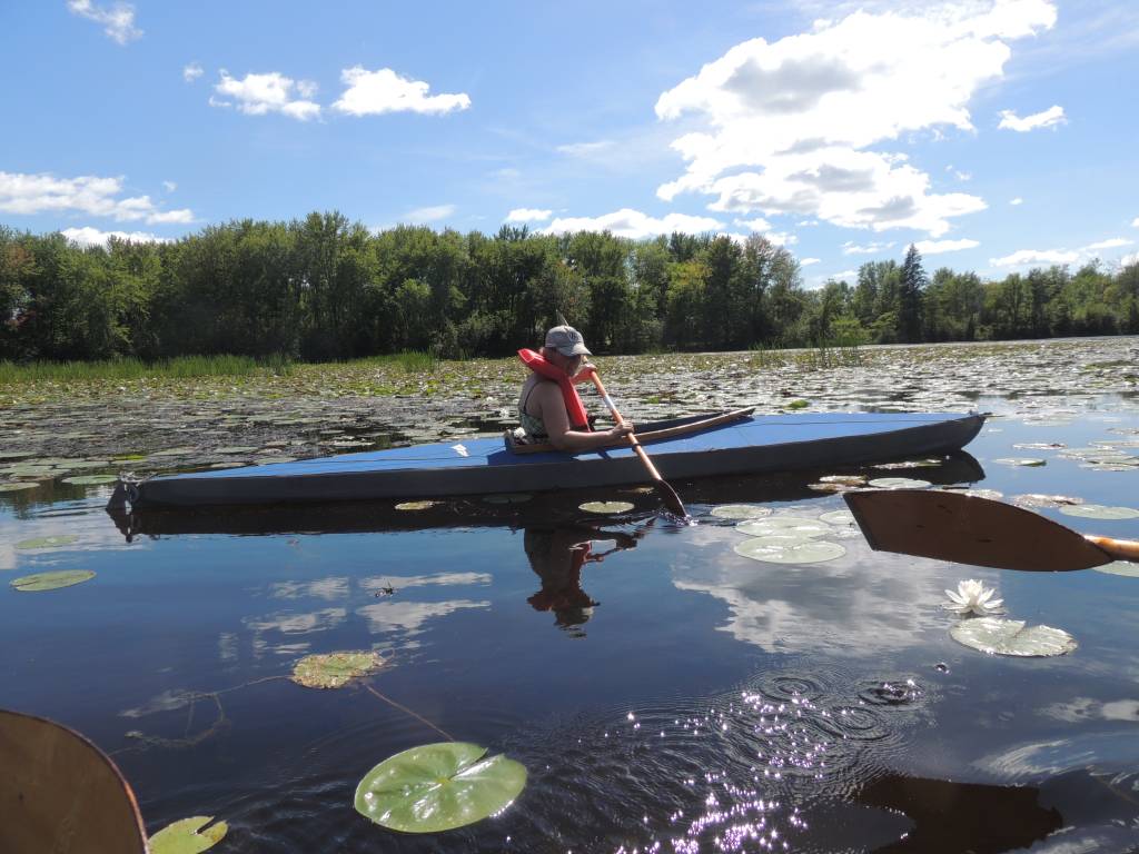 Hier, nous sommes partis faire une petite balade avec un Klepper T9 et un Aerius quatro bi place sur le rivière des Outaouais. Le Klepper T 9 est un modèle de kayak pliant monoplace de légende fabriqué entre 1959 et 1970, il est considéré comme un des meilleurs kayak de randonnée jamais construit. J’ai pu constater sa grande maniabilité dans les marais que nous avons parcouru. il se faufile avec aisance sur les hauts fond, maniable, il est très réactif. Monique qui l’a manoeuvré durant presque toute la sortie l’a ensuite prêté à Antoine. Lorsqu’elle est rentrée dans la place avant de l’Aerius, elle a tout suite regretté son T9 ! Elle se sentait plus à l’étroit ! Elle trouve le T9 stable et se sent en sécurité.