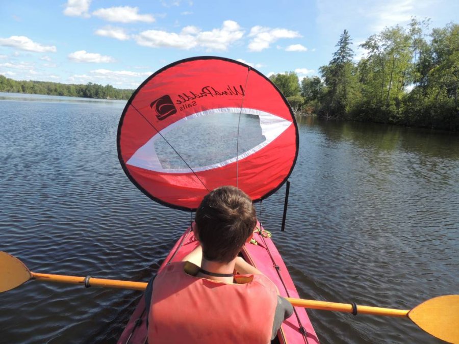 Quelques minutes plus tard, une autre risée. On lance la voile et cette fois on a pu naviguer à la voile plusieurs minutes. Ce fut grisant. Cette voile est vraiment plaisante.